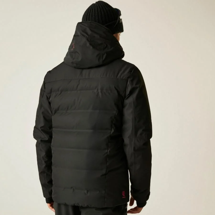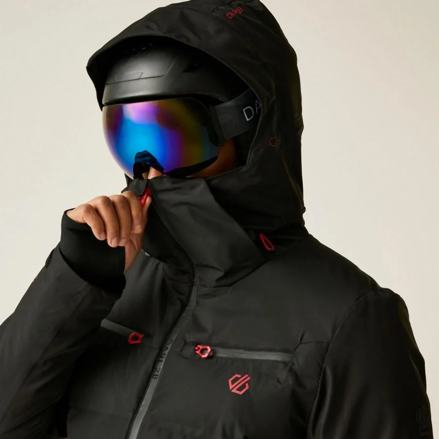 Levehető, állítható technikai kapucni merevített silddel, sisak-kompatibilis kialakítással. Teljes sífelszerelés-kompatibilitás: síbérlet zseb, levehető hószoknya gélbetétes rögzítéssel. Hónalj szellőző cipzárak hálós béléssel a hőmérséklet-szabályozásért. Belső rugalmas mandzsetták hüvelykujj-bújtatóval.