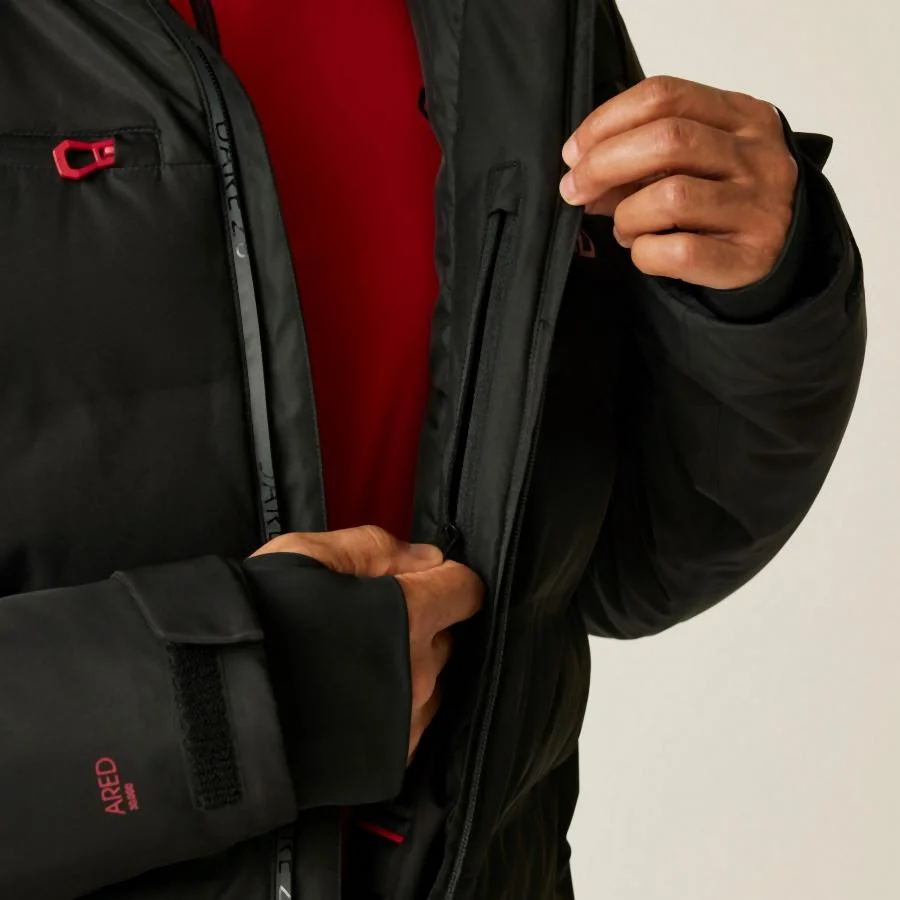 A kritikusan ragasztott varrások ott nyújtanak vízállóságot, ahol a legnagyobb szükség van rá, míg a hőzáró bélés és az újrahasznosított meleg szigetelés garantálja a kényelmet. Anyag: ARED 30/30K újrahasznosított technikai szövet kivételes vízállóság és légáteresztés. Vízlepergető YKK cipzárak és belső védőcipzár állvédővel.