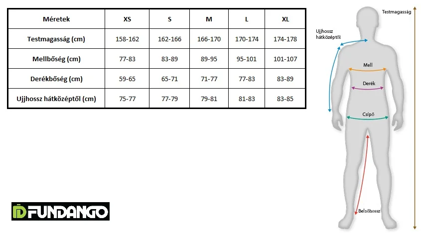 FUNDANGO mérettáblázat