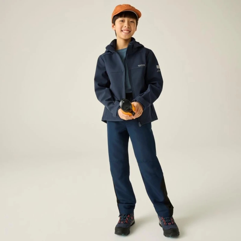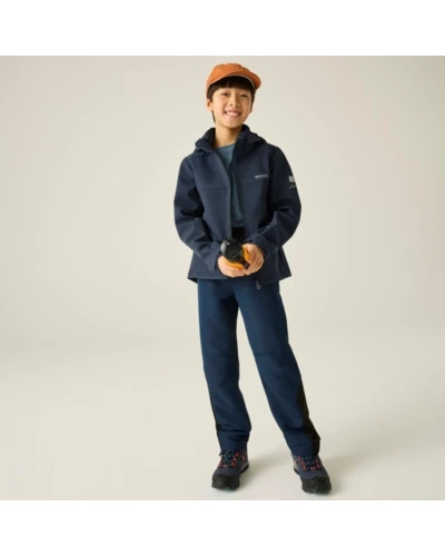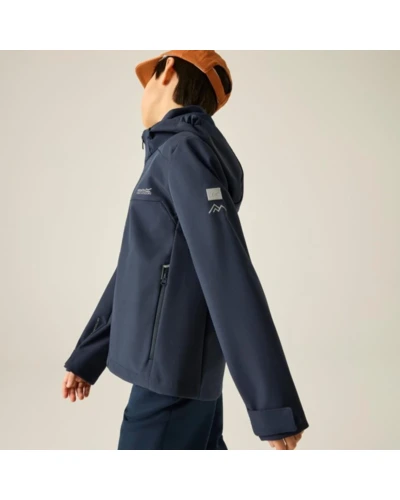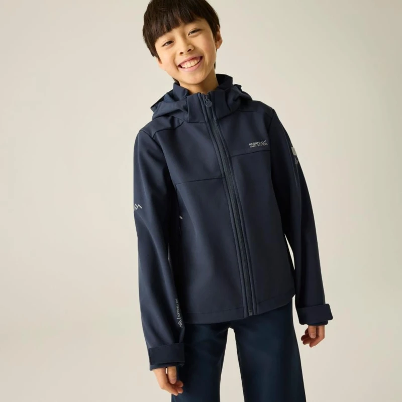 Gyerek softshell kabát, Prémium gyerek softshell kabát Softshell XPT membrán, vízálló és szélálló, 10 000 g/m?/24h légáteresztés, Ez a gyerek technikai softshell kabát 98% poliészter / 2% elasztán összetételû, hálós hátoldalú Softshell XPT vízálló anyagból készült. A víz- és szélálló membrán megbízható védelmet nyújt változékony időjárási körülmények között, míg a 10 000 g/m?/24 óra légáteresztési teljesítmény aktív használat során is megfelelő komfortot biztosít., Főbb jellemzők:, 98% poliészter / 2% elasztán hálós hátoldalú Softshell XPT vízálló anyag, Vízálló és szélálló membrán, Légáteresztési érték: 10 000 g/m?/24 óra, Levehető kapucni, 2 alsó cipzáras zseb, Állítható mandzsetta, Állítható, gumizsinóros alsó szegély 7 éves kortól, Nyomtatott névcímke 8 éves korig, 360°-os fényvisszaverő részletek, Ajánlott: Gyerek softshell kabátként ideális iskolába, kiránduláshoz, túrázáshoz és mindennapi szabadtéri programokhoz szeles, enyhén csapadékos időben. Kiváló választás aktív mozgáshoz és változékony időjárási körülményekhez., Fenntarthatóság: A strapabíró softshell konstrukció hosszú élettartamot és megbízható teljesítményt biztosít, ellenállva a mindennapi igénybevételnek.