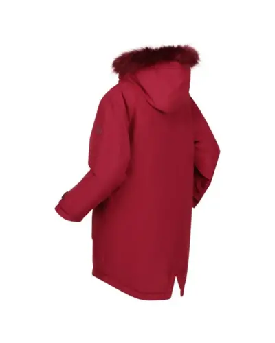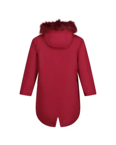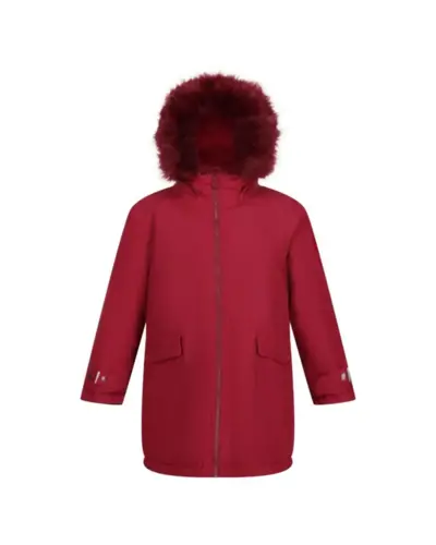 Junior télikabát, Isotex-könnyû 5.000 mm vízálló és lélegző selymes polyester, Lélegző érték 5.000 g/m2/24H, Tartós víztaszító felület, Ragasztott varrások, 100% polyester szőrme a belső hátrészen, 100% polyester taft bélés a karokon és a testrészen, thermo béléstöltet, fix kapucni mûszőrmével, 2 mély zseb, Állítható mandzsettabőség patentos rögzítéssel