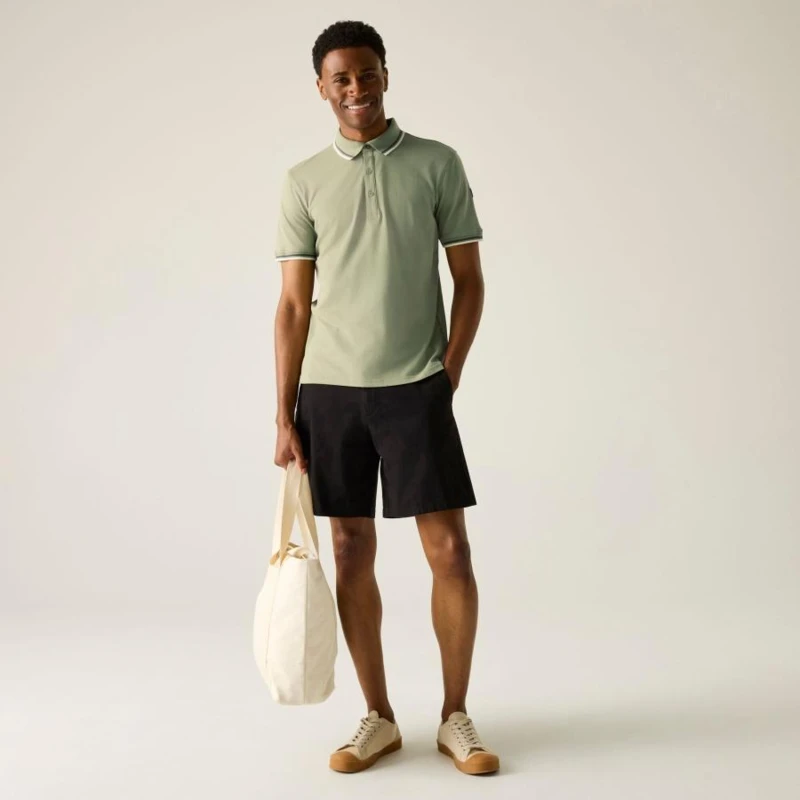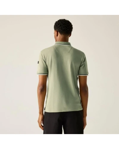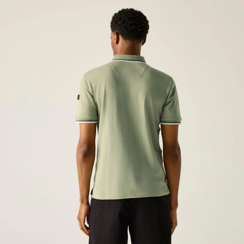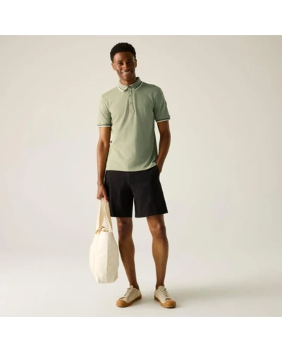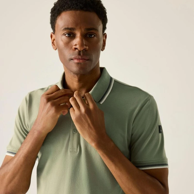 Férfi póló, Prémium férfi stretch piké póló 95% pamut, UV 40 védelem, sportos részletek, Ez a férfi rövid ujjú piké póló 95% pamut / 5% elasztán összetételû, 160 g/m? súlyú anyagból készült. A rugalmas pamut piké szövet kényelmes viseletet és jó szellőzést biztosít mindennapi használat során. A sportos kialakítást bordázott gallér és mandzsetta, kontrasztos csíkozott szegély, valamint előrehelyezett vállvarrás egészíti ki a nagyobb komfort érdekében. Az UPF 40 UV-védelem segít mérsékelni a napsugárzás hatását., Főbb jellemzők:, 95% pamut / 5% elasztán piké anyag, 160 g/m?, Bordázott gallér és mandzsetta, Csíkozott szegélyrész a galléron és az ujjakon, Előrehelyezett vállvarrás a kényelmesebb illeszkedésért, 3 gombos nyakpánt, Oldalsó hasíték részlet, UPF 40 UV-védelem, Ajánlott: Férfi galléros pólóként ideális mindennapi viselethez, utazáshoz, kiránduláshoz és könnyû szabadidős tevékenységekhez. Kiváló választás melegebb időben, amikor fontos a komfort és a sportosan elegáns megjelenés., Fenntarthatóság: A természetes pamut alapanyag kellemes viseletet és tartósságot biztosít. A minőségi anyaghasználat hosszabb élettartamot tesz lehetővé, csökkentve a gyakori cseréből eredő környezeti terhelést.