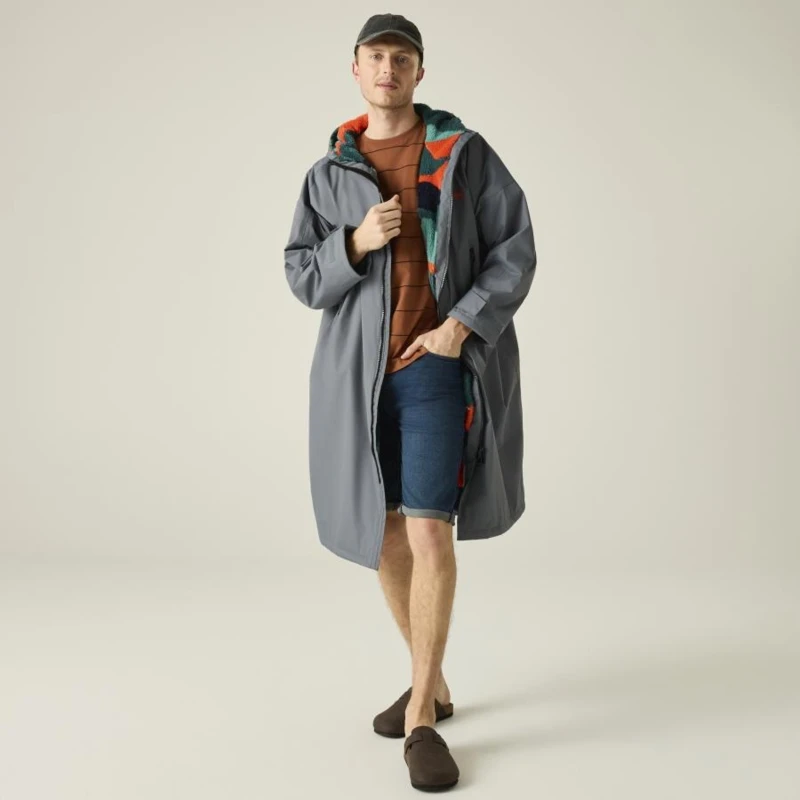 Esőkabát unisex, Vízálló hyrafort anyag 100% poliészter, ragasztott varratok, a varrásnál leragasztva, hogy a tûpöttyöknél se ázzon át, polár bélés, belső zseb, fix kapucni, 2 mély zseb