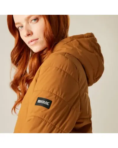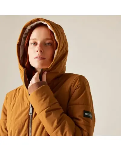 Női bélelt kabát, Elegancia és melegség fenntartható kivitelben, Ez a női télikabát tökéletes választás azok számára, akik nem szeretnének kompromisszumot kötni a stílus, a kényelem és a környezettudatosság között. A könnyû, rugalmas 100% poliészter szövet kiváló mozgásszabadságot biztosít, míg a tartós vízlepergető bevonat megóv az esőtől és hótól., A kabát 200g-os újrahasznosított Thermoguard szintetikus szigeteléssel van ellátva, ami melegen tart még a leghidegebb napokon is. A luxus érzetû mûszőrme bélés a kapucniban extra kényelmet és stílust ad, a belső biztonsági zseb pedig praktikusan védi értékeidet., A két alsó patentos zseb stílusos részletként funkcionál, míg a 100% poliészter taffeta bélés kellemes tapintású belső komfortot nyújt., Újrahasznosított anyagból készült, Modern megjelenés, Megbízható védelem a hideg és a csapadék ellen