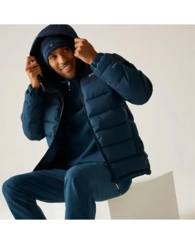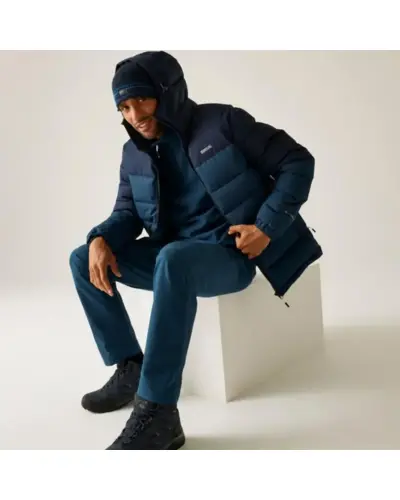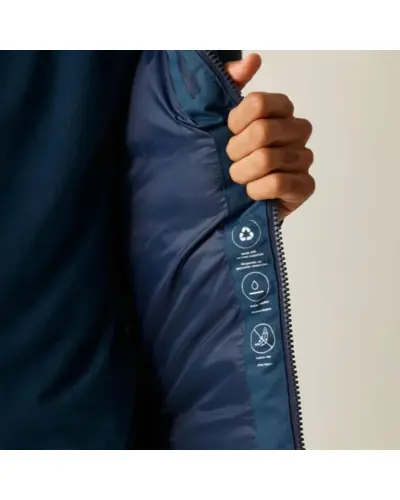 Férfi bélelt kabát, Ez a kabát a hideg időjárás igazi bajnoka! A 100% poliészter dobby szövésû külső anyag (120 g/m?) strapabíró és tartós, míg a 350 g/m? súlyú, prémium újrahasznosított szintetikus pehelyszigetelés kivételes hőtartást biztosít anélkül, hogy valódi tollat tartalmazna vegánbarát és környezettudatos választás., A tartós vízlepergető bevonat, a poliamid bélés, valamint a beépített, állítható kapucni gondoskodnak a teljes védelemről és kényelemről a legzordabb időjárásban is. A belső cipzáras biztonsági zseb, a cipzáras alsó zsebek, a rugalmas mandzsetták és az állítható alsó szegély mind hozzájárulnak a praktikus és jól illeszkedő kialakításhoz., 120 g/m? súlyú, erős dobby szövésû poliészter külső anyag, 350 g/m? prémium, újrahasznosított, pehelymentes szintetikus szigetelés, Poliamid bélés a sima, kényelmes viseletért, Tartós vízlepergető felület, Belső cipzáras biztonsági zseb, Beépített kapucni állítható megoldással, Két cipzáras alsó zseb, Rugalmas mandzsetták, Állítható húzózsinóros alsó szegély, Újrahasznosított anyagok felhasználásával készült, ? Téli mindennapokra, munkába járáshoz vagy hosszabb kinti tartózkodáshoz, ? Azoknak, akik extra meleg kabátot keresnek a leghidegebb napokra, ? Tudatos vásárlóknak, akik prémium meleget szeretnének fenntartható formában, Tipp: Viseld meleg aláöltözettel és vízálló lábbelivel a teljes komfortért ez a kabát nem csak jól néz ki, hanem valóban felkészült a tél kihívásaira!