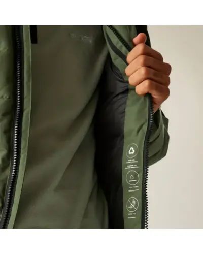 Férfi bélelt kabát, Ez a kabát a hideg időjárás igazi bajnoka! A 100% poliészter dobby szövésû külső anyag (120 g/m?) strapabíró és tartós, míg a 350 g/m? súlyú, prémium újrahasznosított szintetikus pehelyszigetelés kivételes hőtartást biztosít anélkül, hogy valódi tollat tartalmazna – vegánbarát és környezettudatos választás., A tartós vízlepergető bevonat, a poliamid bélés, valamint a beépített, állítható kapucni gondoskodnak a teljes védelemről és kényelemről a legzordabb időjárásban is. A belső cipzáras biztonsági zseb, a cipzáras alsó zsebek, a rugalmas mandzsetták és az állítható alsó szegély mind hozzájárulnak a praktikus és jól illeszkedő kialakításhoz., 120 g/m? súlyú, erős dobby szövésû poliészter külső anyag, 350 g/m? prémium, újrahasznosított, pehelymentes szintetikus szigetelés, Poliamid bélés a sima, kényelmes viseletért, Tartós vízlepergető felület, Belső cipzáras biztonsági zseb, Beépített kapucni állítható megoldással, Két cipzáras alsó zseb, Rugalmas mandzsetták, Állítható húzózsinóros alsó szegély, Újrahasznosított anyagok felhasználásával készült, ? Téli mindennapokra, munkába járáshoz vagy hosszabb kinti tartózkodáshoz, ? Azoknak, akik extra meleg kabátot keresnek a leghidegebb napokra, ? Tudatos vásárlóknak, akik prémium meleget szeretnének fenntartható formában, Tipp: Viseld meleg aláöltözettel és vízálló lábbelivel a teljes komfortért – ez a kabát nem csak jól néz ki, hanem valóban felkészült a tél kihívásaira!
