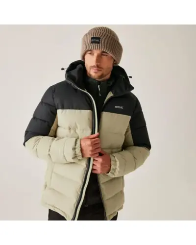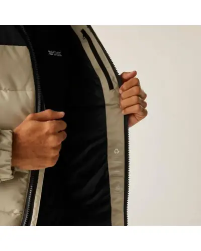 Férfi bélelt kabát, Ez a kabát a hideg időjárás igazi bajnoka! A 100% poliészter dobby szövésû külső anyag (120 g/m?) strapabíró és tartós, míg a 350 g/m? súlyú, prémium újrahasznosított szintetikus pehelyszigetelés kivételes hőtartást biztosít anélkül, hogy valódi tollat tartalmazna vegánbarát és környezettudatos választás., A tartós vízlepergető bevonat, a poliamid bélés, valamint a beépített, állítható kapucni gondoskodnak a teljes védelemről és kényelemről a legzordabb időjárásban is. A belső cipzáras biztonsági zseb, a cipzáras alsó zsebek, a rugalmas mandzsetták és az állítható alsó szegély mind hozzájárulnak a praktikus és jól illeszkedő kialakításhoz., 120 g/m? súlyú, erős dobby szövésû poliészter külső anyag, 350 g/m? prémium, újrahasznosított, pehelymentes szintetikus szigetelés, Poliamid bélés a sima, kényelmes viseletért, Tartós vízlepergető felület, Belső cipzáras biztonsági zseb, Beépített kapucni állítható megoldással, Két cipzáras alsó zseb, Rugalmas mandzsetták, Állítható húzózsinóros alsó szegély, Újrahasznosított anyagok felhasználásával készült, ? Téli mindennapokra, munkába járáshoz vagy hosszabb kinti tartózkodáshoz, ? Azoknak, akik extra meleg kabátot keresnek a leghidegebb napokra, ? Tudatos vásárlóknak, akik prémium meleget szeretnének fenntartható formában, Tipp: Viseld meleg aláöltözettel és vízálló lábbelivel a teljes komfortért ez a kabát nem csak jól néz ki, hanem valóban felkészült a tél kihívásaira!