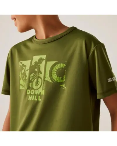 Gyerek gyorsan száradó póló, Egyszínû változat: 130 g/m? újrahasznosított poliészter, Mintás változat: 135 g/m? újrahasznosított poliészter piké, Fenntarthatóság: Újrahasznosított anyagból készült, Nedvességelvezetés: Kiváló légáteresztő és izzadságelvezető tulajdonságok, Dizájn: Grafikus nyomatok a stílusos megjelenésért, Ez a könnyû és környezetbarát póló ideális választás sportoláshoz, aktív mozgáshoz vagy mindennapi viselethez. Kiváló nedvességelvezető képessége és fenntartható anyaga kényelmes és tudatos döntést biztosít.
