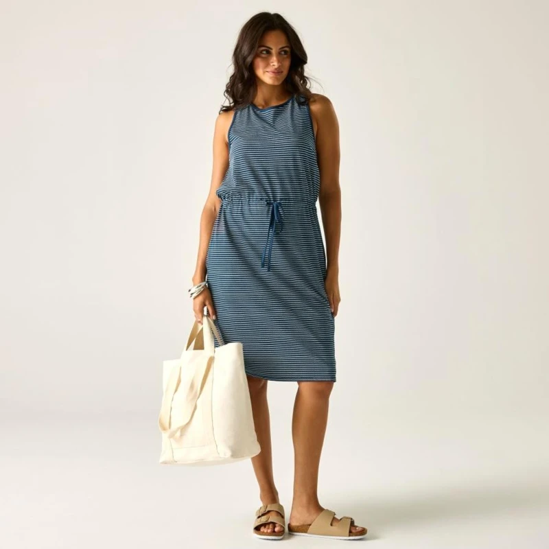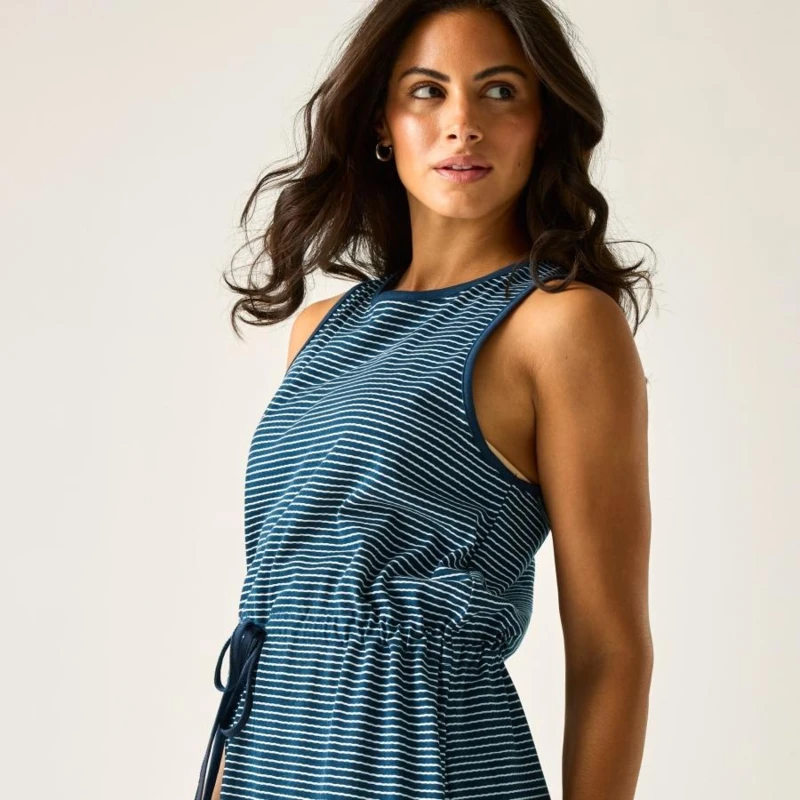 Női ruha, Prémium női pamutkeverék ruha – állítható derékrész, 155 g/m?, Ez a női ruha 60% pamut / 40% poliészter single jersey anyagból készült, 155 g/m? súlyban, egyszínû és fonalfestett csíkos változatban. A könnyû, puha tapintású szövet kényelmes viseletet biztosít a mindennapokban, míg az állítható húzózsinóros derékrész nőies, formálható sziluettet eredményez., Főbb jellemzők:, 60% pamut / 40% poliészter single jersey anyag, 155 g/m?, 60% pamut / 40% poliészter fonalfestett csíkos single jersey anyag, 155 g/m?, Kerek nyakkivágás, Állítható húzózsinóros derékrész, 2 alsó zseb, Könnyû, kényelmes konstrukció, Ajánlott: Női nyári ruhaként ideális mindennapi viselethez, utazáshoz, városi programokhoz és könnyû szabadtéri tevékenységekhez. Kiváló választás meleg időben, amikor fontos a komfort és a sportosan nőies megjelenés., Fenntarthatóság: A pamut és poliészter keverék tartós és könnyen kezelhető anyagot biztosít, amely hosszú élettartamot garantál. A minőségi kivitel csökkenti a gyakori ruhacsere szükségességét.