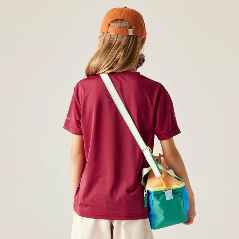 Gyerek gyorsan száradó póló, Prémium gyerek sportpóló – Q-WIC technológia, újrahasznosított technikai anyagból, Ez a könnyû gyerek sportpóló Q-WIC technológiával készült, amely hatékonyan elvezeti az izzadságot és gyorsítja a száradást az aktív mozgás során. A 90% újrahasznosított poliészter és 10% elasztán összetételû hálós anyag rugalmas, jól szellőzik és kényelmes viseletet biztosít sportoláshoz és mindennapi használatra., Főbb jellemzők:, Q-WIC technológia a hatékony nedvességelvezetésért és gyors száradásért, 90% újrahasznosított poliészter / 10% elasztán hálós technikai anyag, Könnyû, légáteresztő és rugalmas kialakítás, Grafikus print részlet, Ajánlott:, Iskolai sportórákhoz, edzésekhez, futáshoz és aktív szabadtéri programokhoz. Ideális választás mozgásban lévő gyermekek számára, akik gyorsan száradó, kényelmes sportfelsőt keresnek., Fenntarthatóság:, Magas arányban újrahasznosított poliészter felhasználásával készült, amely csökkenti a környezeti terhelést, miközben megőrzi a technikai teljesítményt és tartósságot.