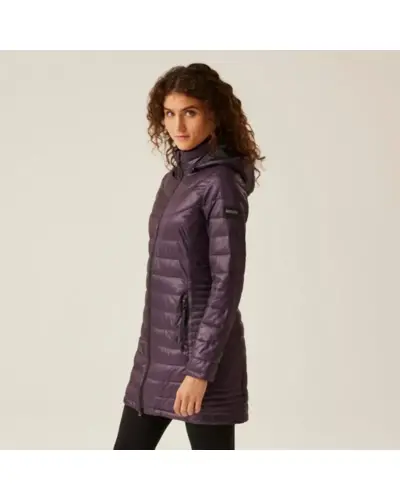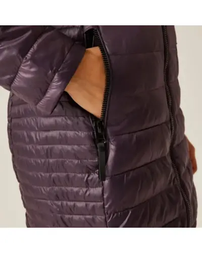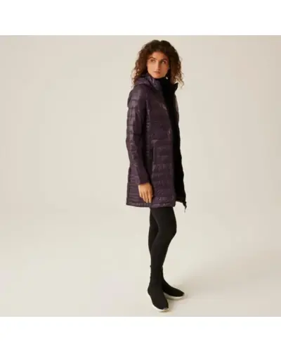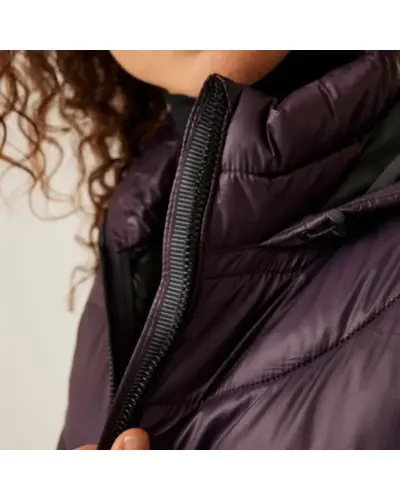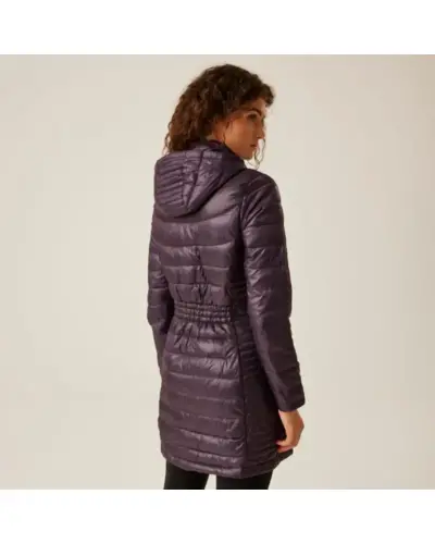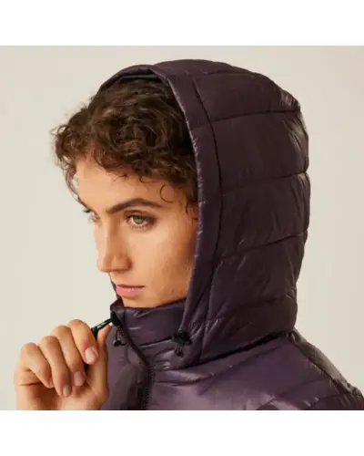 Női könnyû steppelt kabát, Könnyû, 20d újrahasznosított poliamid anyag metálos fényû felülettel, Tartós vízlepergető bevonat, Közepes súlyú, prémium minőségû szintetikus pehelymentes bélés, 100% poliészter taft bélés, Beépített kapucni állítható pántokkal, Kétirányú cipzár elöl, Részben gumírozott derék, Két cipzáras alsó zseb, Ez a kabát könnyû, mégis meleg, és modern megjelenést kölcsönöz a metálos felületû anyagának , köszönhetően. Ideális választás mindazoknak, akik praktikus és stílusos kabátot keresnek, , amely környezetbarát anyagokból készült.