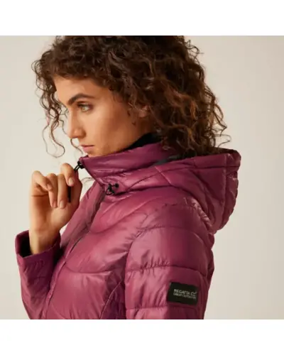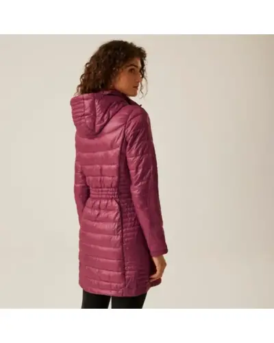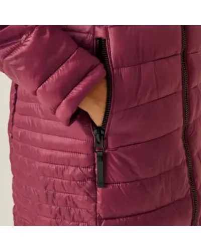 Női könnyû steppelt kabát, Könnyû, 20d újrahasznosított poliamid anyag metálos fényû felülettel, Tartós vízlepergető bevonat, Közepes súlyú, prémium minőségû szintetikus pehelymentes bélés, 100% poliészter taft bélés, Beépített kapucni állítható pántokkal, Kétirányú cipzár elöl, Részben gumírozott derék, Két cipzáras alsó zseb, Ez a kabát könnyû, mégis meleg, és modern megjelenést kölcsönöz a metálos felületû anyagának , köszönhetően. Ideális választás mindazoknak, akik praktikus és stílusos kabátot keresnek, , amely környezetbarát anyagokból készült.