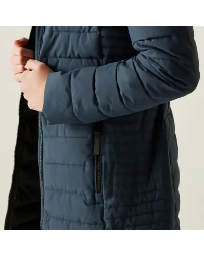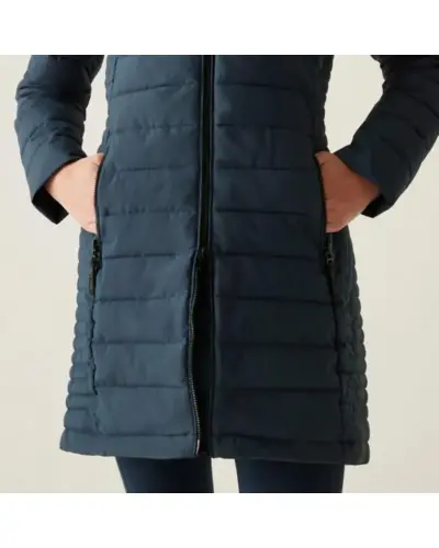 Női steppelt kabát, Női télikabát – megbízható meleg, letisztult stílus, Ez a könnyû, mégis meleg női télikabát ideális választás a hideg téli napokra. A 200 g-os újrahasznosított pehelymentes szigetelés és a strapabíró, vízlepergető külső anyag gondoskodik arról, hogy szárazon és melegen maradj – akár városban, akár természetben viselnéd. A letisztult dizájn és a praktikus részletek tökéletes egyensúlyt teremtenek a funkcionalitás és az esztétikum között., Anyag: 100% poliészter – 112 g/m?, Tartós vízlepergető bevonat – véd az eső és hó ellen, Feather free, újrahasznosított szintetikus szigetelés – 200 g/m?, Bélés: 100% poliészter taffeta – sima, kényelmes tapintású, Fix kapucni állítható húzózsinórral – a tökéletes illeszkedésért, Kétirányú középső cipzár – kényelmes viselés mozgás közben is, 2 cipzáras alsó zseb – meleg kéz és biztonságos tárolás, ? Ajánlott: hétköznapi városi viselethez, hideg időben kiránduláshoz vagy munkába járáshoz, ?? Fenntartható döntés – újrahasznosított alapanyagból készült