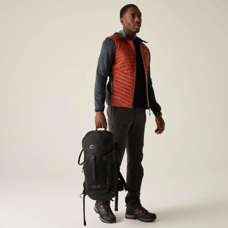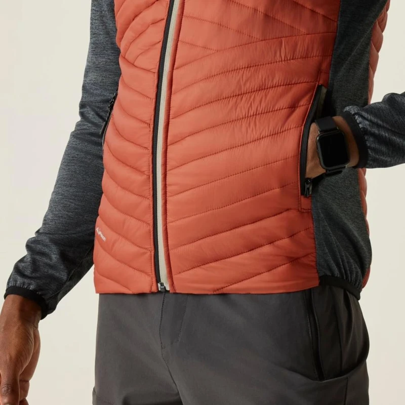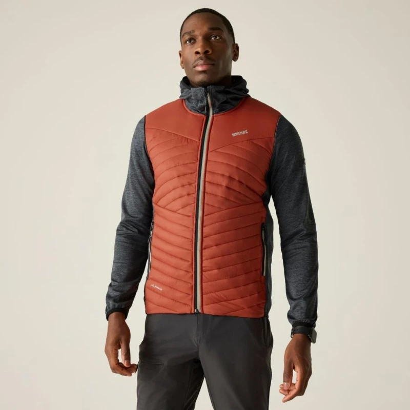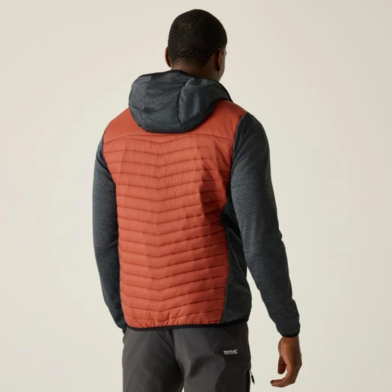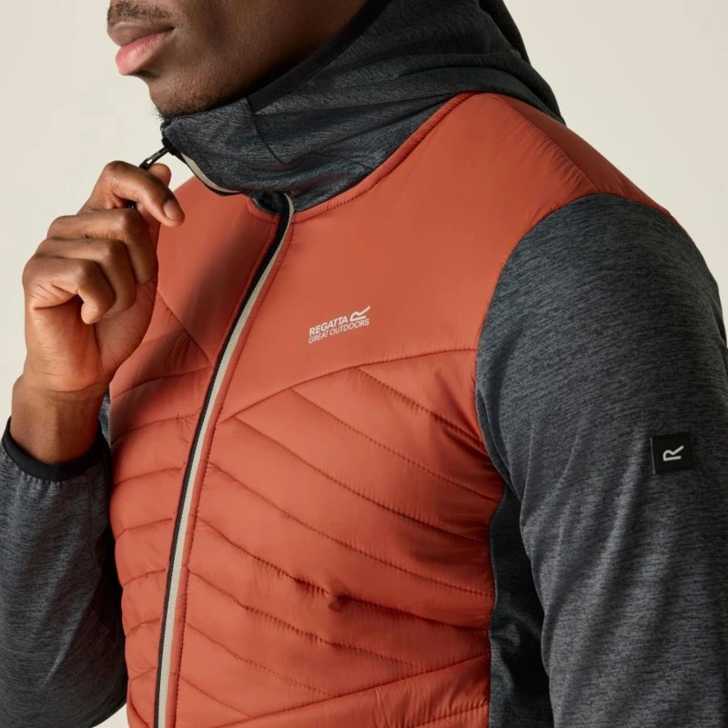 Férfi hibrid kabát, Prémium férfi könnyû hibrid szigetelt kabát – Warmloft down-touch töltet, vízlepergető kivitel, stretch panelek, Ez a férfi technikai hibrid kabát 100% poliamid, ultrakönnyû 20D fő anyagból készült, mindössze 37 g/m? súlyban, amelyhez 100% poliészter melange stretch anyag hálós hátoldallal társul a fokozott komfort és mozgásszabadság érdekében. A test részen tartós vízlepergető bevonat biztosít védelmet enyhe csapadék ellen. Az újrahasznosított szintetikus Warmloft down-touch szigetelés 120 g/m? töltetsúllyal kiváló hőszigetelést nyújt pehelyhatású komforttal, miközben megőrzi könnyû súlyát és jó csomagolhatóságát., Főbb jellemzők:, 100% poliamid ultrakönnyû 20D külső anyag, 37 g/m?, 100% poliészter melange stretch anyag hálós hátoldallal, 160 g/m?, Tartós vízlepergető bevonat a törzsrészen, Újrahasznosított Warmloft down-touch szintetikus szigetelés, Szigetelés súlya: 120 g/m?, 2 alsó cipzáras zseb, Rugalmas szegély a kapucni peremén, a mandzsettán és az alsó részen, Ajánlott: Férfi könnyû hibrid szigetelt kabátként ideális túrázáshoz, trekkinghez, kiránduláshoz, utazáshoz és aktív szabadtéri programokhoz. Kiváló középréteg hidegebb időben, illetve önálló rétegként átmeneti időszakban., Fenntarthatóság: Az újrahasznosított Warmloft szigetelés csökkenti a környezeti terhelést, miközben magas hőkomfortot biztosít. A könnyû, tartós anyaghasználat hosszú élettartamot garantál, minimalizálva a gyakori cseréből eredő környezeti hatásokat.