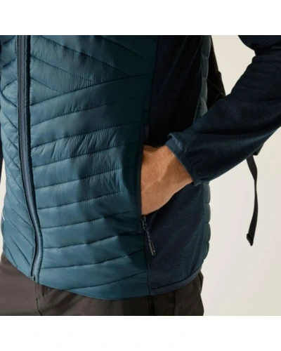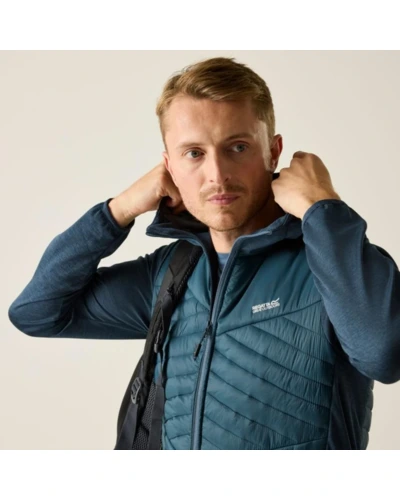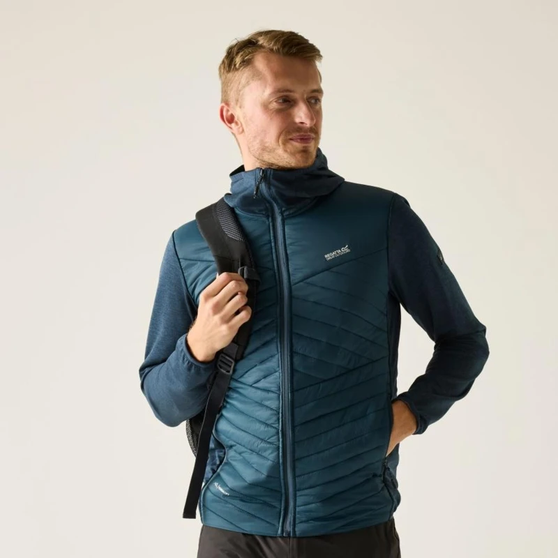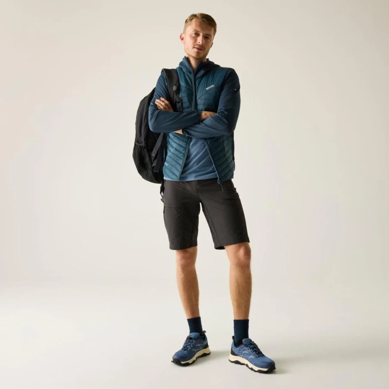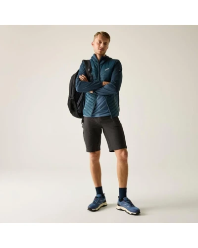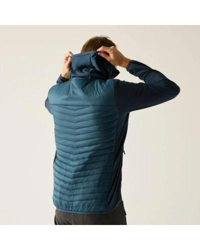 Férfi hibrid kabát, Prémium férfi könnyû hibrid szigetelt kabát – Warmloft down-touch töltet, vízlepergető kivitel, stretch panelek, Ez a férfi technikai hibrid kabát 100% poliamid, ultrakönnyû 20D fő anyagból készült, mindössze 37 g/m? súlyban, amelyhez 100% poliészter melange stretch anyag hálós hátoldallal társul a fokozott komfort és mozgásszabadság érdekében. A test részen tartós vízlepergető bevonat biztosít védelmet enyhe csapadék ellen. Az újrahasznosított szintetikus Warmloft down-touch szigetelés 120 g/m? töltetsúllyal kiváló hőszigetelést nyújt pehelyhatású komforttal, miközben megőrzi könnyû súlyát és jó csomagolhatóságát., Főbb jellemzők:, 100% poliamid ultrakönnyû 20D külső anyag, 37 g/m?, 100% poliészter melange stretch anyag hálós hátoldallal, 160 g/m?, Tartós vízlepergető bevonat a törzsrészen, Újrahasznosított Warmloft down-touch szintetikus szigetelés, Szigetelés súlya: 120 g/m?, 2 alsó cipzáras zseb, Rugalmas szegély a kapucni peremén, a mandzsettán és az alsó részen, Ajánlott: Férfi könnyû hibrid szigetelt kabátként ideális túrázáshoz, trekkinghez, kiránduláshoz, utazáshoz és aktív szabadtéri programokhoz. Kiváló középréteg hidegebb időben, illetve önálló rétegként átmeneti időszakban., Fenntarthatóság: Az újrahasznosított Warmloft szigetelés csökkenti a környezeti terhelést, miközben magas hőkomfortot biztosít. A könnyû, tartós anyaghasználat hosszú élettartamot garantál, minimalizálva a gyakori cseréből eredő környezeti hatásokat.