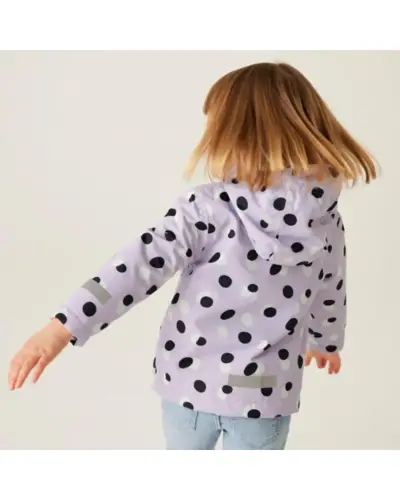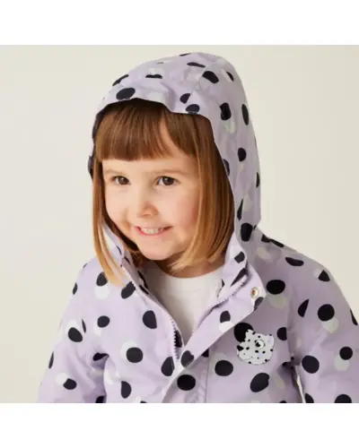 Gyerek bélelt esőkabát, Anyag: Isotex 10000 újrahasznosított 100% poliészter szövet, amely vízálló és lélegző., Lélegzőképesség: 10,000g/m?/24 óra értékelés, amely biztosítja a megfelelő szellőzést és nedvességelvezetést., Varratok: Ragasztott varratok, amelyek teljes vízállóságot biztosítanak., Vízlepergető bevonat: Tartós vízlepergető felülettel ellátott, amely megóvja a kabátot a nedvességtől., Szigetelés: Könnyû Thermoguard szigetelés, amely melegséget biztosít hûvös időben., Bélés: 100% poliészter taft bélés, amely kényelmes viseletet nyújt., Kapucni: Beépített kapucni silddel, amely extra védelmet nyújt az eső ellen., Dizájn: Állatos karakter nyomtatás a mellrészen, ami vidám és játékos megjelenést biztosít., Cipzár és viharvédő szegély: Elöl középen cipzárral és viharvédő szegéllyel a hideg szél és az eső elleni extra védelem érdekében., Zsebek: Két alsó zseb hajtókával és tépőzáras rögzítéssel a biztonságos tárolásért., Biztonsági elemek: 360 fokos fényvisszaverő szegélyek, amelyek növelik a láthatóságot és a biztonságot rossz látási viszonyok között., Ez a kabát ideális választás gyerekeknek, mivel nemcsak védelmet nyújt a hideg és nedves időjárás ellen, hanem vidám és vonzó megjelenést is biztosít az állatos nyomtatással. A teljes vízállóság, a könnyû szigetelés és a fényvisszaverő elemek további előnyöket nyújtanak, miközben a környezetbarát anyagok használata támogatja a fenntarthatóságot.