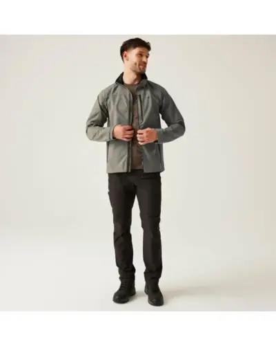 Férfi softshell, 96% poliészter/4% elasztán, Softshell XPT, vízálló anyag, Légáteresztő képesség 10 000/m?/24 óra, Levehető kapucni, 1 cipzáras mellzseb és 2 alsó cipzáras zseb, Állítható pánt a mandzsettánál, húzózsinórral állítható szegély