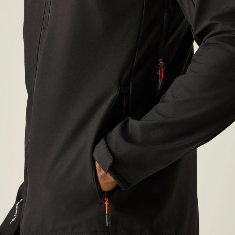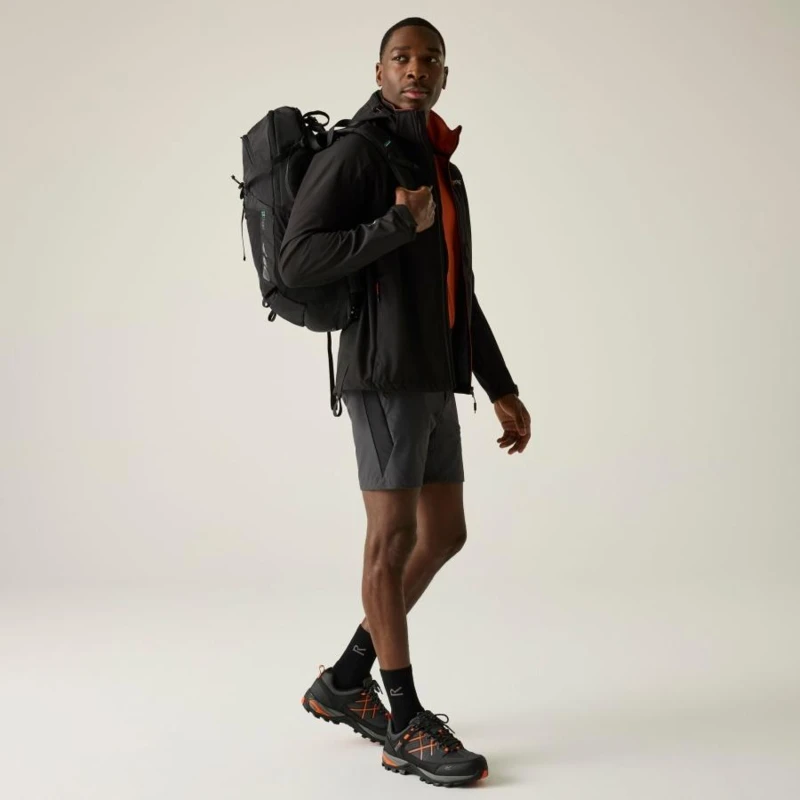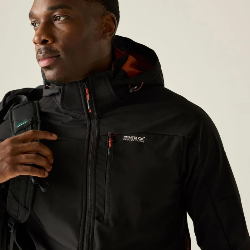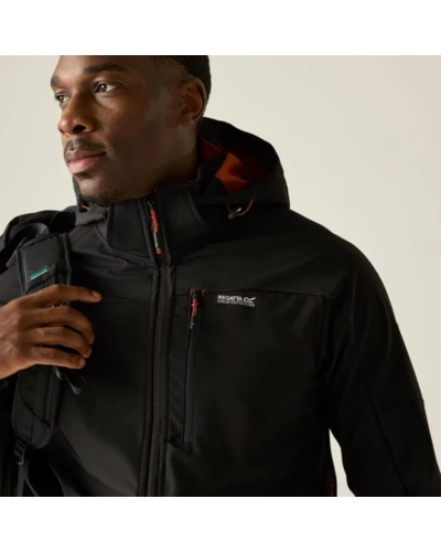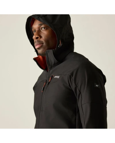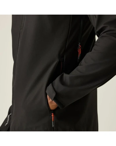 Férfi softshell kabát, Prémium férfi vízálló softshell kabát – Softshell XPT technológia, 10 000 g/m?/24h légáteresztés, levehető kapucni, Ez a technikai férfi softshell kabát 96% poliészter / 4% elasztán összetételû, mesh hátoldallal ellátott, szövött Softshell XPT vízálló anyagból készült, 200 g/m? súlyban. A konstrukció megbízható időjárás elleni védelmet és magas, 10 000 g/m?/24 óra légáteresztési teljesítményt biztosít aktív használat során. A tartós vízlepergető bevonat fokozza a nedvességgel szembeni ellenállást, míg a szellőző hónaljcipzárak és az állítható részletek optimalizálják a komfortot változékony körülmények között., Főbb jellemzők:, 96% poliészter / 4% elasztán mesh hátoldalú Softshell XPT vízálló anyag, 200 g/m?, Légáteresztési érték: 10 000 g/m?/24 óra, Tartós vízlepergető (DWR) bevonat, Levehető, állítható kapucni, Hónaljszellőző cipzárak a fokozott légáramlásért, 1 cipzáras mellzseb, 2 alsó cipzáras zseb, Állítható húzózsinóros alsó szegély, Ajánlott: Férfi softshell kabátként ideális túrázáshoz, trekkinghez, hegymászáshoz, kiránduláshoz és aktív szabadtéri programokhoz. Kiváló választás szeles, enyhén csapadékos időjárási körülmények között, amikor fontos a vízállóság és a légáteresztés egyensúlya., Fenntarthatóság: A tartós, kopásálló softshell anyag hosszú élettartamot biztosít, csökkentve a gyakori cseréből eredő környezeti terhelést. A minőségi konstrukció intenzív, több szezonos használatra készült.
