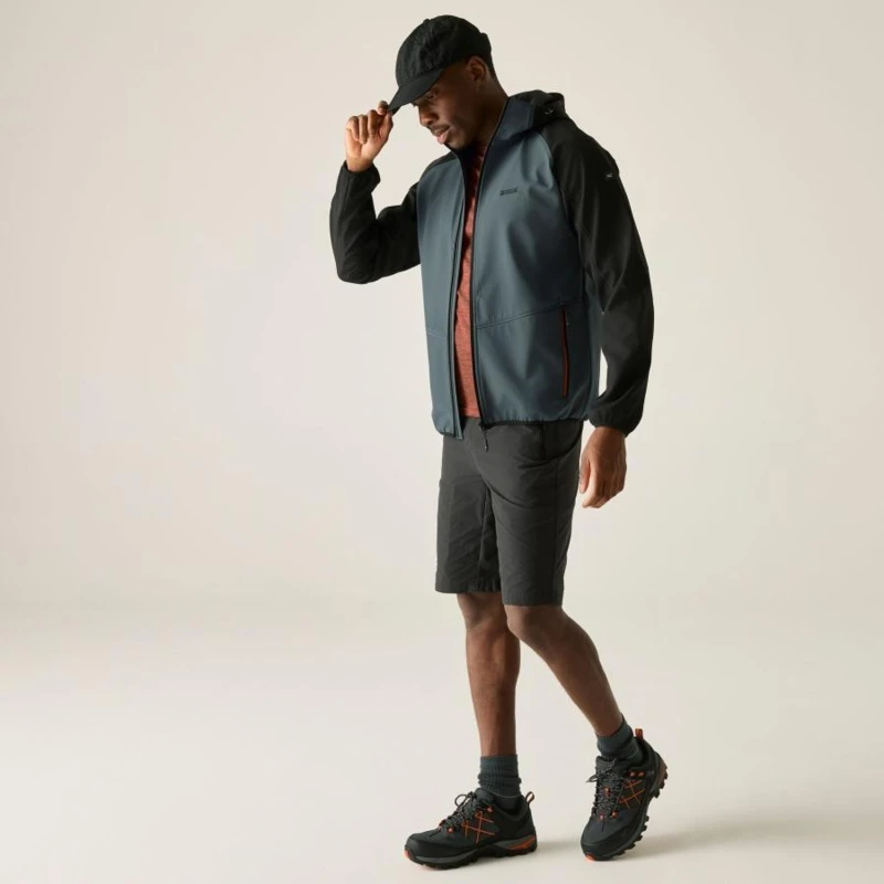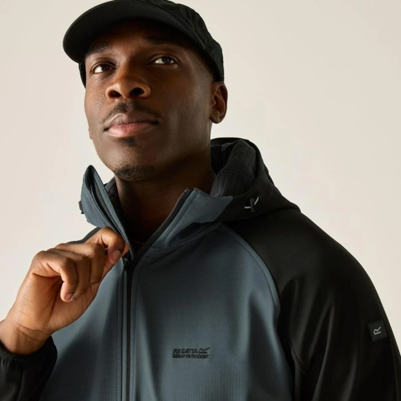 férfi softshell felső, Meleg bélésû, rugalmas 96% poliészter 4% elasztán softshell anyag, Tartós víztaszító felület, Szélálló, Állítható, nem-levehető kapucni, Két cipzáros zseb az alján, Rugalmas szélû mandzsetta és alsó szegély
