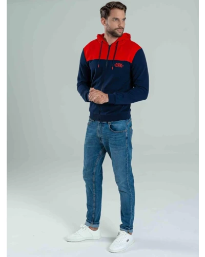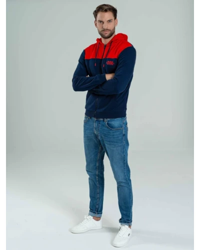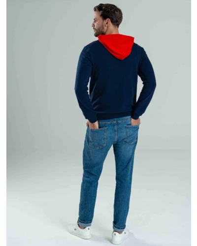 PULÓVER KAPUCNIS FÉRFI KÉK-PIROS DORKO ARON