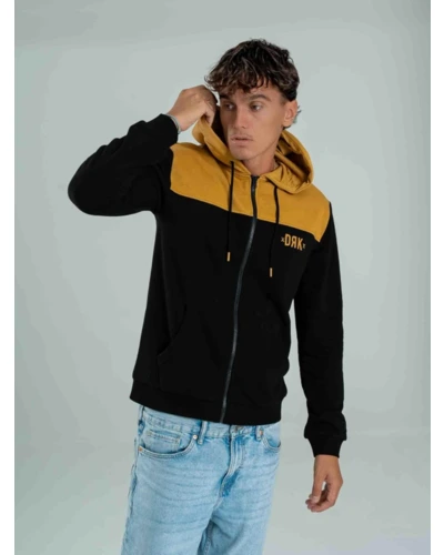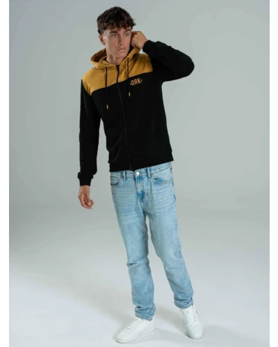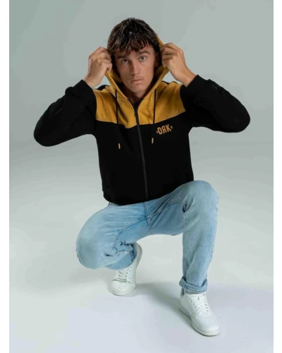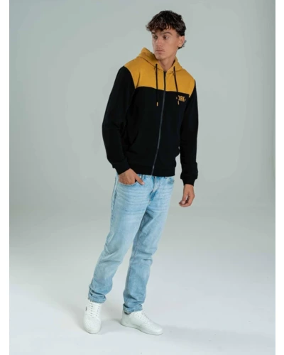 PULÓVER KAPUCNIS ZIPPZÁRAS FÉRFI FEKETE-SÁRGA DORKO ARON