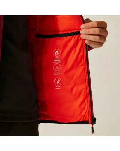 Férfi bélelt kabát, Ez a kabát ideális választás azok számára, akik a könnyedséget, funkcionalitást és környezettudatosságot keresik egyetlen stílusos darabban. A 100% poliészterből készült, mindössze 62 g/m? súlyú külső anyag rendkívül könnyû, miközben a tartós vízlepergető bevonat hatékony védelmet nyújt az enyhébb csapadék ellen., A 170 g/m? prémium újrahasznosított szintetikus pehelyszigetelés melegen tart anélkül, hogy állati eredetû összetevőket tartalmazna – így ideális választás vegánok számára is. A poliamid bélés kényelmes viseletet biztosít, míg a rugalmas szegélyek és kapucni kellemesen simulnak a testhez, megakadályozva a hideg bejutását., Ultrakönnyû, 62 g/m? poliészter külső anyag, 170 g/m? pehelymentes, újrahasznosított szintetikus szigetelés, Vízlepergető külső bevonat, Poliamid bélés a kényelmes viselésért, Beépített kapucni rugalmas szegéllyel, Két rejtett cipzáras alsó zseb, Rugalmas mandzsetták és alsó szegély, Újrahasznosított anyagokból készült, Kinek ajánljuk?, ? Városi mindennapokra, sétákhoz, biciklizéshez, utazáshoz, ? Akik meleg, mégis könnyen rétegezhető kabátot keresnek, ? Környezet- és állatbarát megoldást választóknak, Tipp: Kiváló középrétegként kabát alá, de önállóan is megállja a helyét hûvösebb napokon – kényelmes, letisztult, meleg és fenntartható.