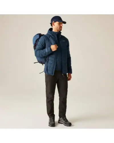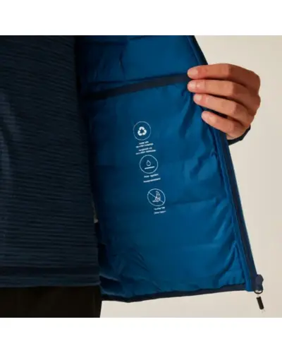 Férfi bélelt kabát, Ez a kabát ideális választás azok számára, akik a könnyedséget, funkcionalitást és környezettudatosságot keresik egyetlen stílusos darabban. A 100% poliészterből készült, mindössze 62 g/m? súlyú külső anyag rendkívül könnyû, miközben a tartós vízlepergető bevonat hatékony védelmet nyújt az enyhébb csapadék ellen., A 170 g/m? prémium újrahasznosított szintetikus pehelyszigetelés melegen tart anélkül, hogy állati eredetû összetevőket tartalmazna – így ideális választás vegánok számára is. A poliamid bélés kényelmes viseletet biztosít, míg a rugalmas szegélyek és kapucni kellemesen simulnak a testhez, megakadályozva a hideg bejutását., Ultrakönnyû, 62 g/m? poliészter külső anyag, 170 g/m? pehelymentes, újrahasznosított szintetikus szigetelés, Vízlepergető külső bevonat, Poliamid bélés a kényelmes viselésért, Beépített kapucni rugalmas szegéllyel, Két rejtett cipzáras alsó zseb, Rugalmas mandzsetták és alsó szegély, Újrahasznosított anyagokból készült, Kinek ajánljuk?, ? Városi mindennapokra, sétákhoz, biciklizéshez, utazáshoz, ? Akik meleg, mégis könnyen rétegezhető kabátot keresnek, ? Környezet- és állatbarát megoldást választóknak, Tipp: Kiváló középrétegként kabát alá, de önállóan is megállja a helyét hûvösebb napokon – kényelmes, letisztult, meleg és fenntartható.