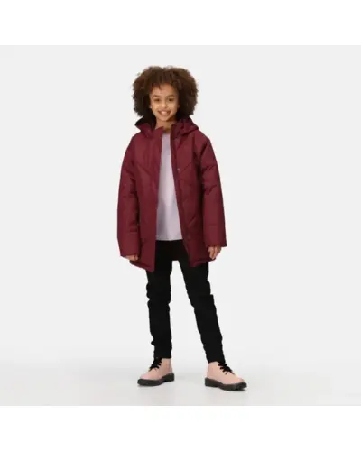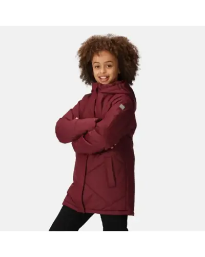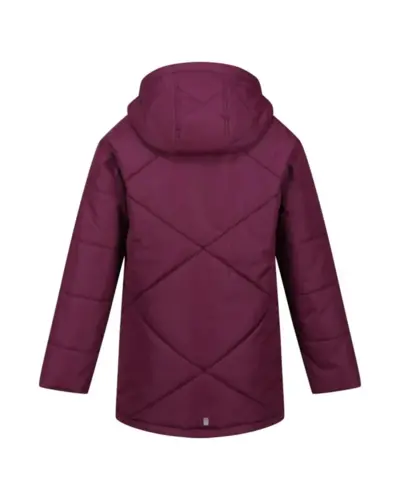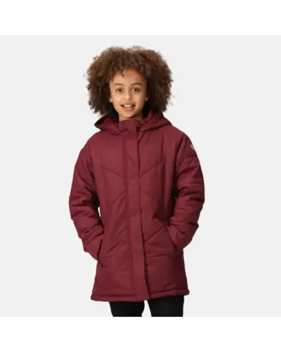 Gyerek steppelt kabát, 100% poliészter anyag, Tartós vízlepergető felület, Újrahasznosított szintetikus Warmloft szigetelő töltet, 100% poliészter taft bélés, fix kapucni, 2 alsó zseb, Fényvisszaverő díszítés