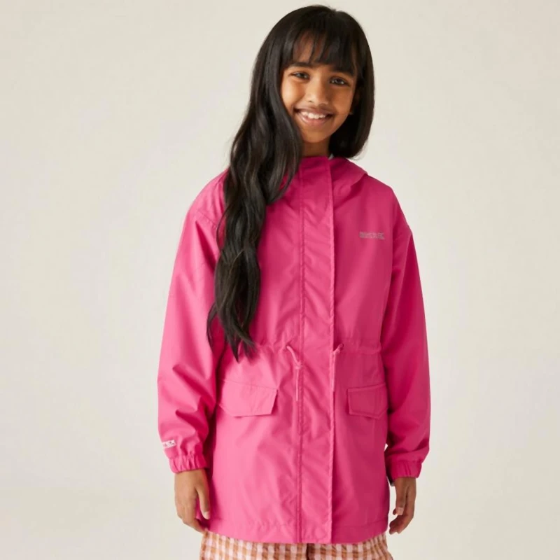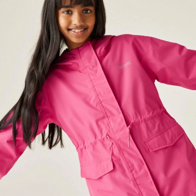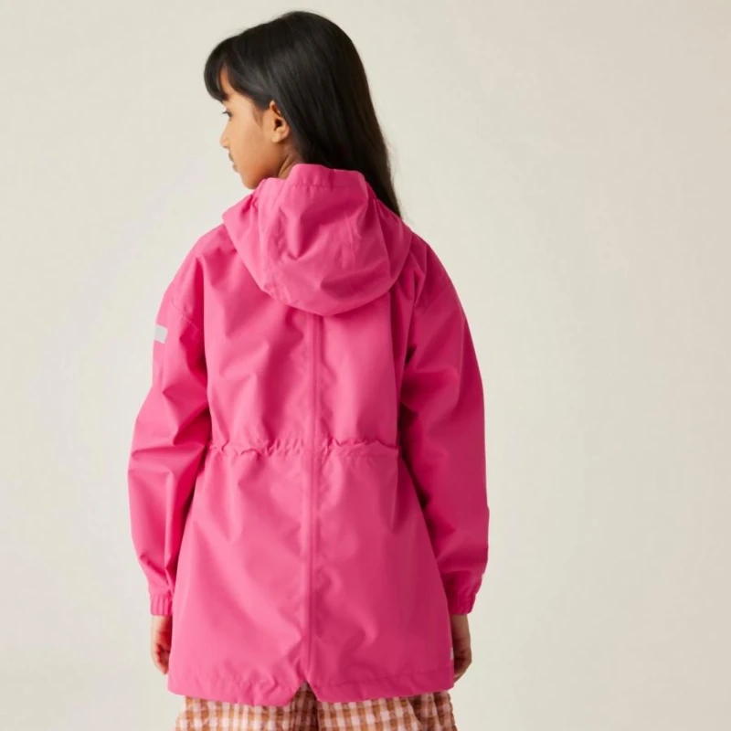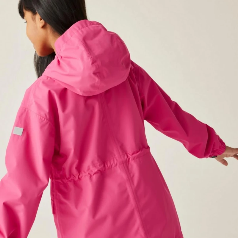 Gyerek esőkabát, Vízálló és légáteresztő kabát újrahasznosított anyagokból, Anyag: Isotex 10000 újrahasznosított, bolyhosított poliészter (110 g/m?), Fenntarthatóság: Újrahasznosított anyagból készült, Légáteresztés: 10 000 g/m?/24 óra a kényelmes viseletért, Védelem:, Teljes vízállóság ragasztott varrásokkal, Tartós vízlepergető bevonat az extra védelem érdekében, Bélés: Kapucniban csíkos jersey bélés a puha és meleg érzetért, Kapucni: Beépített kapucni a jobb időjárás elleni védelemért, Illeszkedés:, Derékzsinór az alakformálásért, Rugalmas mandzsetták a szél és eső kizárásáért, Zsebek: 2 alsó zseb rejtett patentos zárással, Szellőzés: Középső hátsó szellőzőnyílás, Biztonság: 360°-os fényvisszaverő részletek a jobb láthatóság érdekében, Ez a stílusos és funkcionális esőkabát ideális választás városi és outdoor használatra. Könnyû, mégis tartós anyaga maximális védelmet biztosít az eső és szél ellen, míg a fényvisszaverő részletek extra biztonságot nyújtanak gyenge fényviszonyok között.