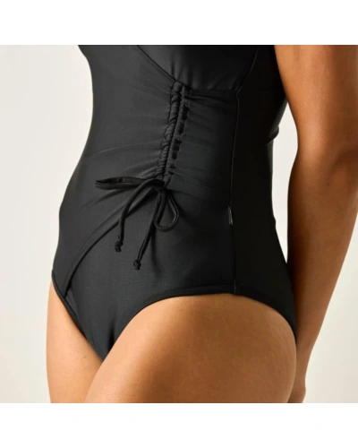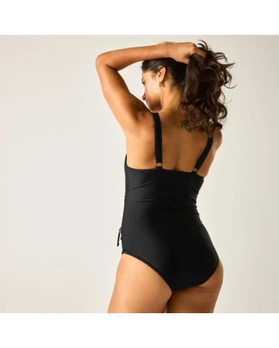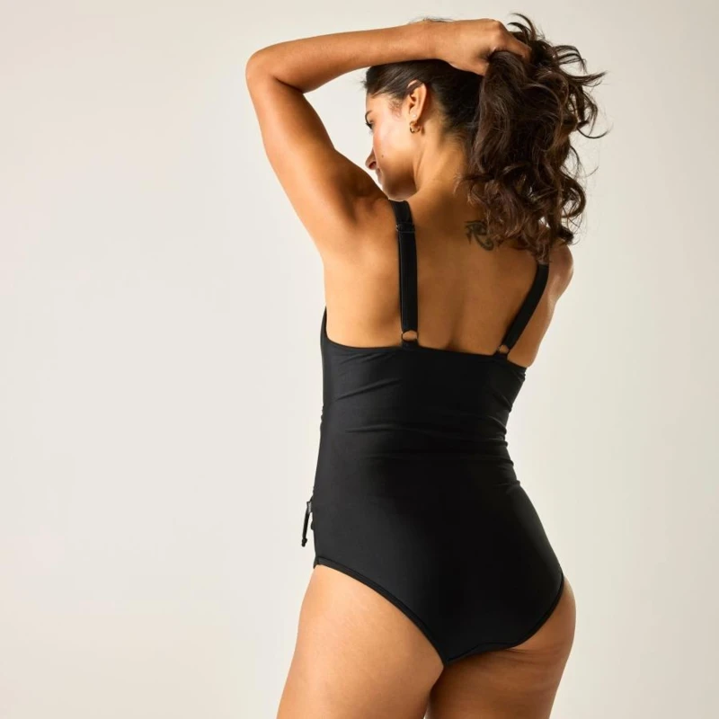 Női fürdőruha, Prémium női alakformáló fürdőruha újrahasznosított stretch anyag, UPF 50+ UV-védelem, Ez a női fürdőruha 85% újrahasznosított poliészter / 15% elasztán összetételû, 200 g/m? súlyú rugalmas anyagból készült. A formatartó, kényelmes szövet stabil illeszkedést biztosít, míg az alakformáló panel és az átlapolt kialakítás nőies, előnyös sziluettet eredményez. Az UPF 50+ UV-védelem segít csökkenteni a napsugárzás káros hatásait vízparti használat során., Főbb jellemzők:, 85% újrahasznosított poliészter / 15% elasztán stretch anyag, 200 g/m?, Egyszínû és teljes felületén mintás változatban elérhető, Teljesen állítható vállpántok a stabilitásért és az egyéni illeszkedésért, Átlapolt elülső rész állítható húzózsinórral, Merevítő nélküli, párnázott kosarak, Hasformáló panel az előnyös illeszkedésért, UPF 50+ UV-védelem, Ajánlott: Női egyrészes fürdőruhaként ideális strandoláshoz, wellnesshez, nyaraláshoz és vízparti pihenéshez. Kiváló választás, ha fontos a komfort, a biztos tartás és az alakformáló hatás., Fenntarthatóság: Az újrahasznosított poliészter alapanyag csökkenti a környezeti terhelést, miközben tartós, formatartó konstrukciót biztosít. A minőségi kivitel hosszú távon megbízható viseletet garantál.
