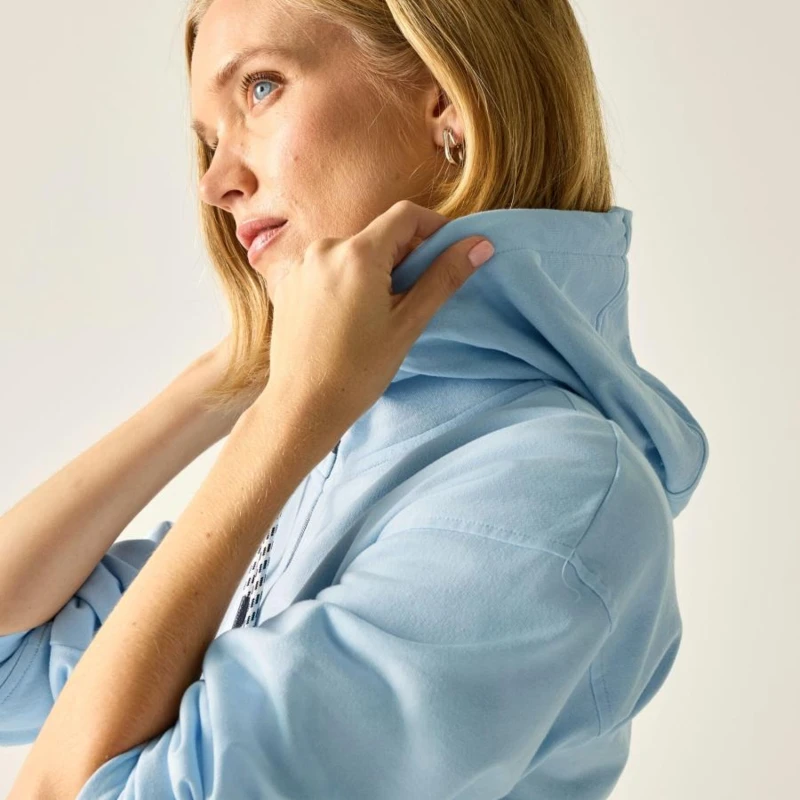 Női kapucnis felső, Prémium női kapucnis pulóver – brushed back fleece, 200 g/m?, Ez a női kapucnis pulóver 60% pamut / 40% poliészter összetételû, 200 g/m? súlyú brushed back fleece anyagból készült. A belül bolyhozott szerkezet kellemes hőérzetet és puha komfortot biztosít, míg az egyszínû és csíkos változatok sokoldalú, sportosan nőies megjelenést kínálnak. A beépített kapucni és a praktikus kenguruzseb a mindennapi viselethez is ideálissá teszi., Főbb jellemzők:, 60% pamut / 40% poliészter brushed back fleece anyag, 200 g/m?, Egyszínû és csíkos változatban elérhető, Beépített kapucni húzózsinórral, Egyszínû vagy mintás jersey bélés a kapucniban, Kenguru stílusú alsó zseb, Puha, meleg és komfortos konstrukció, Ajánlott: Női kapucnis pulóverként ideális mindennapi viselethez, utazáshoz, kiránduláshoz és sportos szabadidős programokhoz. Kiváló választás hûvösebb időben, amikor fontos a kényelem és a meleg érzet., Fenntarthatóság: A tartós pamut-poliészter keverék hosszú élettartamot és formatartást biztosít. A minőségi kivitel csökkenti a gyakori ruhacsere szükségességét.