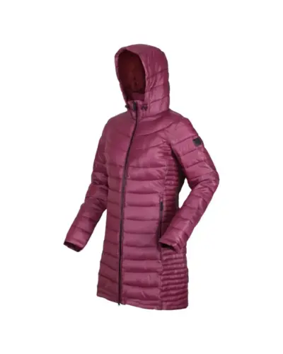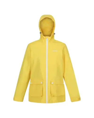 női esőkabát, Hydrafort - vízálló 100% poliészter anyag, Tartós víztaszító felület, Ragasztott varrások, Mintás jersey bélés a kapucnin, 100% poliészter taft bélés, Biztonsági belső zsebbel, Húzózsinórral állítható nem-levehető kapucni, Állítható mandzsetta, Két patentos zseb az alján