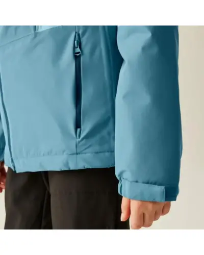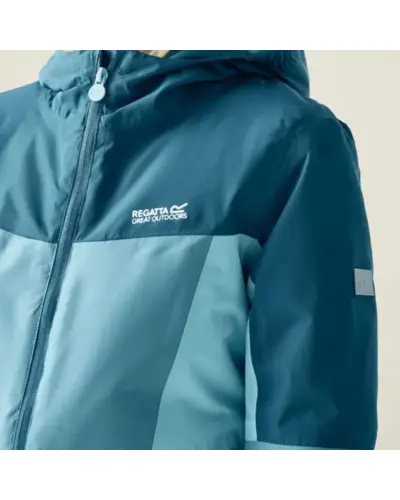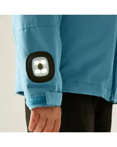 Gyerek bélelt vízálló kabát, Gyerek vízálló kabát beépített zseblámpával – játék és védelem minden időjárásban, Ez a gyerek Isotex 10000 kabát nemcsak vízálló és szélálló, hanem kifejezetten aktív, szabadtéri kalandokra tervezett darab. A Thermoguard szigetelés melegen tart, a ragasztott varrások pedig teljes védelmet nyújtanak az eső ellen. A Brite Light ujjba épített zseblámpa három fényerőfokozattal és beépített akkumulátorral érkezik, így a kinti játék a sötétedés után sem kell, hogy véget érjen., Anyag: 100% poliészter, Isotex 10000 – 110 g/m?, Légáteresztés: 10 000 g/m?/24 óra, Recycled Thermoguard szigetelés – 140 g/m?, Vízlepergető felületkezelés, Teljesen ragasztott varrások, Rugalmas szegélyû kapucni, Cipzárvédő az állnál a kényelmes viseletért, 2 cipzáras alsó zseb, Állítható mandzsetták, Brite Light ujjba épített zseblámpa (3 fényerő, újratölthető akkumulátor), Állítható húzózsinóros alsó szegély (7 éves kortól), 360°-os fényvisszaverő részletek a biztonságért, Nyomtatott névcímke (8 éves korig), Újrahasznosított anyagokból készült – fenntartható választás, Ideális iskolába, kirándulásra vagy esti kinti játékhoz, amikor a védelem, a kényelem és a láthatóság egyaránt fontos.