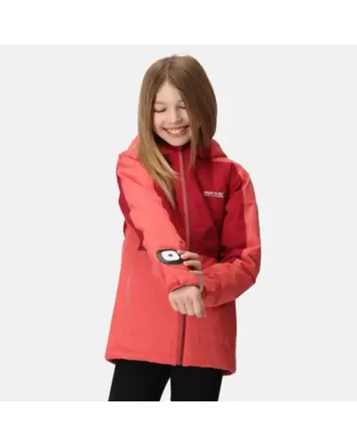 Gyerek bélelt kabát 5.000 mm lámpás kapucnival, Vízálló és lélegző Isotex 5000 újrahasznosított 100% poliészter, Légáteresztő képesség: 5000 g/m?/24/h, Tartós vízlepergető felület, Ragasztott varratok a teljes vízállóságért, Thermoguard szigetelő töltet, fix, állítható kapucni, 2 cipzáras alsó zseb, Állítható mandzsetta, Brite Light a kapucnin elhelyezett elemlámpa, 3 fényerő-beállítás, Beépített újratölthető akkumulátor