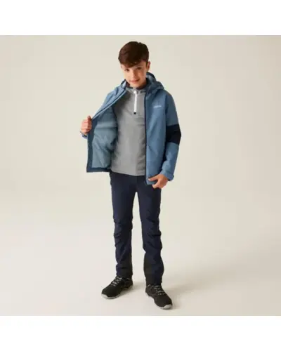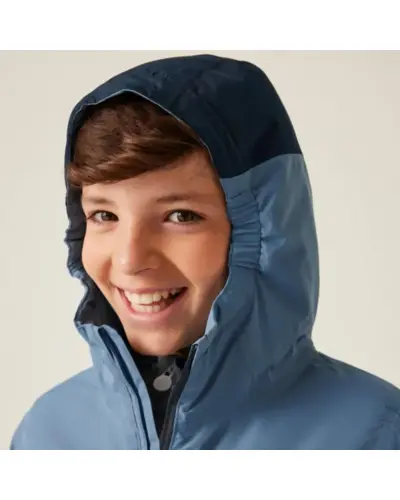 Gyerek bélelt 10000 vízálló és szélálló kabát, Anyag: Isotex 10000 újrahasznosított 100% poliészter szövet., Lélegzőképesség: 10,000g/m?/24 óra, ami jó szellőzést és nedvességkezelést biztosít., Vízlepergetés: Tartós vízlepergető bevonat., Varratok: Ragasztott varratok a teljes vízállóság érdekében., Szigetelés: Közepes vastagságú Thermoguard szigetelés., Kapucni: Beépített kapucni elasztikus szegéllyel., Cipzárvédő: A kényelem érdekében cipzárvédővel., Zsebek: Két cipzáras alsó zseb., Mandzsetták: Állítható mandzsetták., Különleges jellemzők: Brite Light ujj zseblámpa technológia három fényerősségi fokozattal, beépített újratölthető akkumulátorral., Állítható szegély: Állítható rugalmas szegély 7 éves kortól., Biztonság: 360 fokos fényvisszaverő csíkok a jobb láthatóság érdekében., Nyomtatott névcímke: 8 éves korig., Ez a kabát ideális választás azok számára, akik meleg, vízálló és jól szellőző felsőruházatot keresnek, amely környezetbarát és biztonsági funkciókkal is rendelkezik.