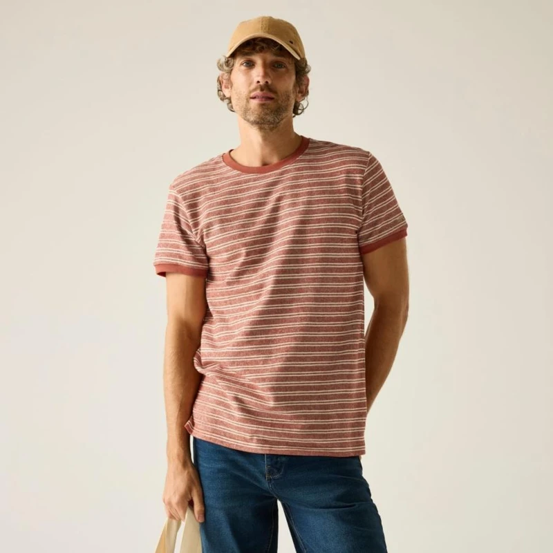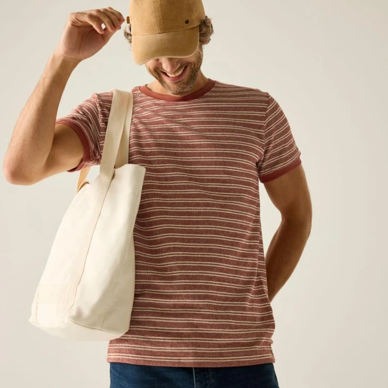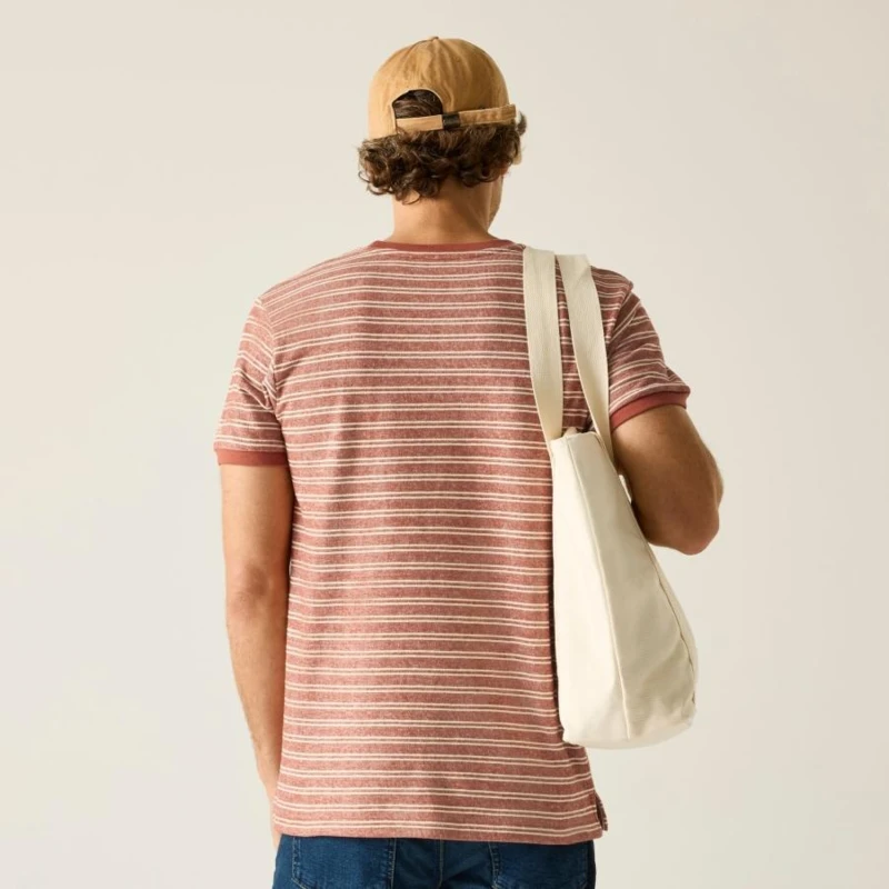 Férfi póló, Prémium férfi pamut póló – lock knit jersey, UPF 50+ UV-védelem, sportos kialakítás, Ez a férfi rövid ujjú póló 100% pamut lock knit jersey anyagból készült, 140 g/m? súlyban. A könnyû, mégis tartós kötött szerkezet kényelmes viseletet és jó szellőzést biztosít melegebb időben. A klasszikus kerek nyakkivágás, valamint a bordázott gallér és mandzsetta sportosan letisztult megjelenést kölcsönöz. Az oldalsó hasítékok növelik a komfortot és a mozgásszabadságot, míg az UPF 50+ UV-védelem segít csökkenteni a napsugárzás káros hatásait., Főbb jellemzők:, 100% pamut lock knit jersey anyag, 140 g/m?, Kerek nyakkivágás, Bordázott gallér és mandzsetta, Oldalsó hasítékok, UPF 50+ UV-védelem, Ajánlott: Férfi pamut pólóként ideális mindennapi viselethez, utazáshoz, kiránduláshoz és nyári szabadtéri programokhoz. Kiváló választás meleg időben, amikor fontos a könnyû súly, a komfort és a letisztult megjelenés., Fenntarthatóság: A természetes pamut alapanyag kellemes viseletet és megfelelő tartósságot biztosít. A minőségi kivitel hosszabb élettartamot eredményez, csökkentve a gyakori ruhacsere szükségességét.