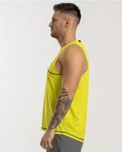 Emeld a teljesítményed mellett a megjelenésed is a maximumra! A Dorko Billy sportos, de mégis extra ujjatlan felső hálószerû, könnyû anyagból készült, így remekül szellőzik még a legintenzívebb edzéseiden is. Rugalmas anyaga tökéletesen idomul minden mozdulatodhoz, így semmi nem vonja el a figyelmed az edzésről. A kontrasztos színû tûzések egyedi megjelenéstkölcsönöznek neked. Légy te a központban az edzéseiden!Alapanyaga: 88% újrahasznosított poliészter