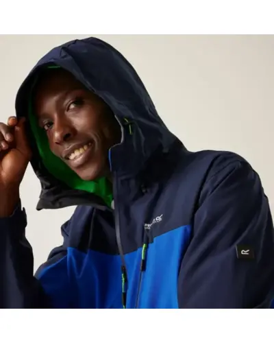 férfi esőkabát 10.000 mm, vízálló légáteresztő Isotex 10000 100 % stretch poliészter anyag, tartós víztaszító felület, hegesztett varrások, állítható technikai kapucni, vízálló első cipzár belső viharvédővel és állvédővel, speciális kialakítású ujjak a nagyobb mozgásszabadságért, 2 cipzáras alsó és 1 mellzseb, belső térképzseb, állítható mandzsetta, állítható zsinóros szegély