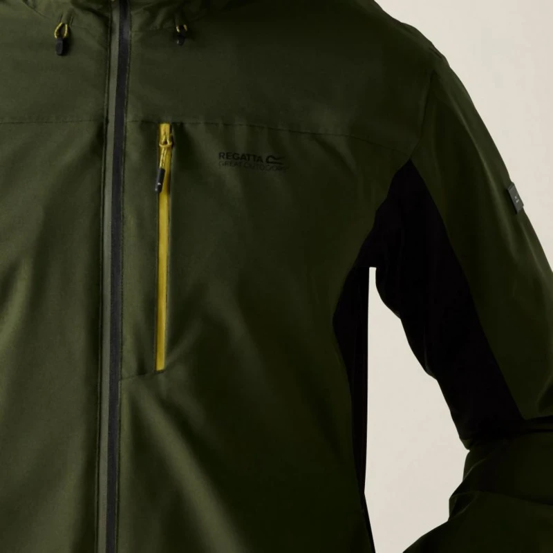 Férfi esőkabát 15000 mm vízálló, Anyag:, Isotex 15000 vízálló és légáteresztő stretch szövet – 165 g/m?, újrahasznosított 100% poliészter, Tulajdonságok:, Újrahasznosított anyagokból készült – fenntartható és környezettudatos választás, Lélegző kialakítás – 15,000 g/m?/24 óra légáteresztő képesség, Tartós vízlepergető bevonat – extra védelem a nedvesség ellen, Teljesen vízálló, ragasztott varrásokkal – maximális vízállóság, Hálós bélés – jobb szellőzés és komfort, Beépített technikai kapucni állítórendszerrel – személyre szabható illeszkedés, Előformázott ujjak – fokozott mozgásszabadság és kényelem, Hi-tech vízlepergető elülső cipzár belső cipzárvédővel és vízelvezető csatornával – extra védelem a nedvesség ellen, Cipzáras mellzseb vízlepergető cipzárral – biztonságos tárolási lehetőség, 2 cipzáras alsó zseb – praktikus tárolás kisebb tárgyak számára, Belső cipzáras biztonsági zseb – értékek védett tárolása, Állítható mandzsetta – testreszabható illeszkedés, Állítható rugalmas zsinórral ellátott szegély – kényelmes és szélálló viselet, Ideális választás túrázáshoz, aktív szabadtéri tevékenységekhez és extrém időjárási körülményekhez.