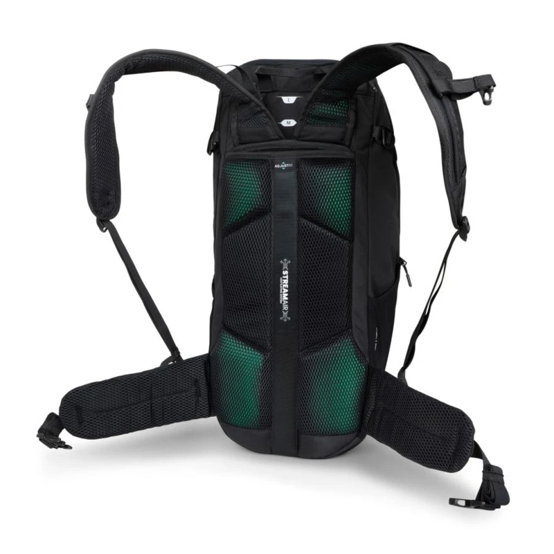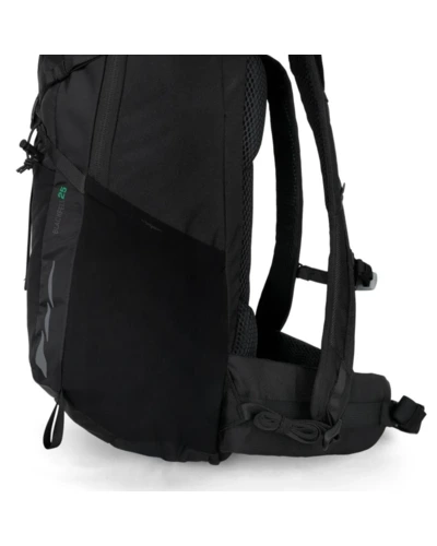Túrahátizsák 25 literes, 57x25x22 1100 gr, Könnyû, ergonomikus és fenntartható túrahátizsák, 210D nagy szakítószilárdságú poliamid ripstop könnyû és tartós, 600D kopásálló poliészter extra strapabíróság, Újrahasznosított anyagokból készült környezetbarát választás, Hordrendszer:, ADJUSTFIT állítható hátrendszer (4350 cm hátméret), TECFOAM párnázás a maximális kényelemért, STREAMAIR szellőzőcsatornák a hatékony légáramlásért, ISOVENT Air Mesh a jobb szellőzés és komfort érdekében, Tárolás és hozzáférés:, Táguló ISOFLEX elülső és oldalsó zsebek, Belső ivótasak-rekesz ivócső-rögzítéssel, Széles, kétirányú cipzáras nyílás a fő rekeszhez, Nagy cipzáras elülső zseb, Állítható, párnázott csípőöv, Oldalsó kompressziós pántok a stabilitásért, Biztonság és időjárásállóság:, Állítható mellpánt beépített vészsíppal, Levehető esővédő a nedves időjárás ellen, Fényvisszaverő részletek a jobb láthatóságért, Túrabot-rögzítő hurkok, PFC-mentes, tartós vízlepergető bevonat, Ez a kényelmes és strapabíró túrahátizsák tökéletes választás túrázáshoz és szabadtéri kalandokhoz. Az állítható hátrendszer, a tágas tárolókapacitás és az időjárásálló kialakítás biztosítja a maximális funkcionalitást és kényelmet minden terepen.