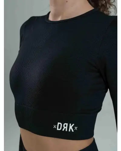 Légy magabiztos és stílusos minden mozdulatodban a DRK BLAIR hosszú ujjú, crop fazonú fitnesz felsőben! Ez a részben újrahasznosított anyagból készült darab nemcsak a környezettudatosság jegyében született, hanem a maximális kényelem és nőies megjelenés jegyében is. A szinte varrásmentes, bordázott dizájn kellemes tapintású és rugalmas viseletet nyújt, szinte második bőrként simul rád. A testhezálló szabás kihangsúlyozza a vonalaidat, míg az elöl elhelyezett 3D DRK logó látványos, mégis ízléses részlet, ami kiemel a tömegből – akár az edzőteremben, akár egy sportos utcai szettben viseled. Anyagösszetétel: 70% újrahasznosított poliamid, 22% poliamid, 8% elasztán\\x0d\\x0aA modell 174 cm magas, és S-es méretet visel