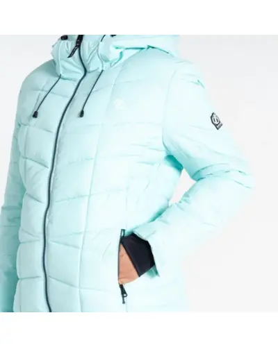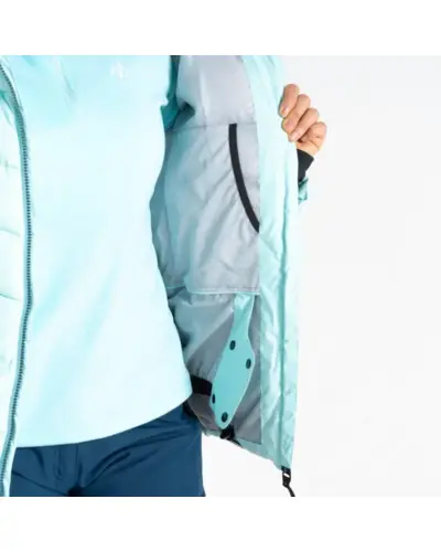 Női síkabát 15/30000 mm, Újrahasznosított vízálló és légáteresztő sztreccs, anyag - Ared 15/30, Tartós vízlepergető felület, Kritikusan helyen elhelyezkedő varrásnál ragasztott varratok a vízálló védelem érdekében, Újrahasznosított, magas hőmérsékletet tartó töltet, Komplett sífunkciók (beleértve a síbérlet zsebet és a fix, hószoknya zselés szegély), fix, állítható kapucni, Teljes hosszúságú cipzár belső cipzárral és állvédővel, Belső sztreccs mandzsetta, 2 x alsó cipzáras zseb, Állítható mandzsetta és szegély, Újrahasznosított poliészter bélés , 2 db belső hálós tárolózseb , lencsetörlő kendő