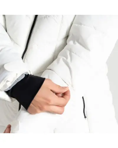 Női síkabát 15/30000 mm, Újrahasznosított vízálló és légáteresztő sztreccs, anyag - Ared 15/30, Tartós vízlepergető felület, Kritikusan helyen elhelyezkedő varrásnál ragasztott varratok a vízálló védelem érdekében, Újrahasznosított, magas hőmérsékletet tartó töltet, Komplett sífunkciók (beleértve a síbérlet zsebet és a fix, hószoknya zselés szegély), fix, állítható kapucni, Teljes hosszúságú cipzár belső cipzárral és állvédővel, Belső sztreccs mandzsetta, 2 x alsó cipzáras zseb, Állítható mandzsetta és szegély, Újrahasznosított poliészter bélés , 2 db belső hálós tárolózseb , lencsetörlő kendő
