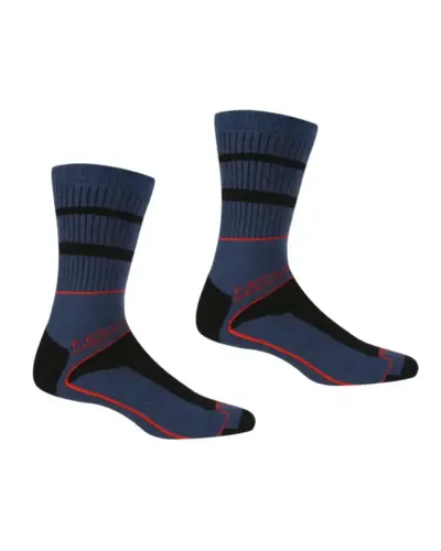 férfi zoknicsomag, Két rétegû zokni, 75% akril 22% poliamid 3% elasztán, Belső anyagösszetétel: 100% poliamid, Külső felülete a cipő belsejéhez alkalmazkodik, Bélés követi a láb mozgását, elkerülendő a kidörzsölődés, Antibakteriális, Bordázott szegély a bokán, Lábfej kialakításnak köszönhetően jól szellőzik, Ütéselnyelő, párnázott talp, Talpboltozatnál bordázott, Kényelmes, lapos orrvarrás , 2 pár/ csomag