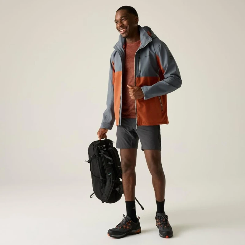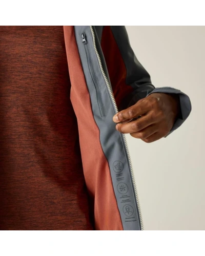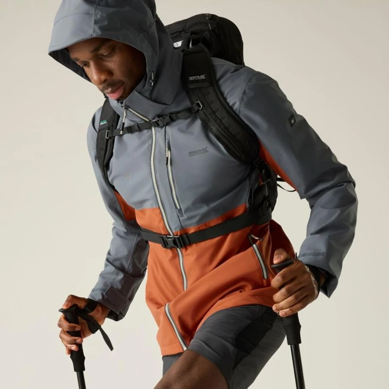 Férfi esőkabát 20000 mm vízálló, Prémium férfi vízálló technikai kabát ISOTEX 20000 membrán, 20 000 g/m?/24h légáteresztés, levehető kapucni, Ez a férfi technikai héjkabát vízálló és légáteresztő ISOTEX 20000 membránnal készült, 100% újrahasznosított poliészter stretch anyagból, 165 g/m? súlyban. A 20 000 g/m?/24 óra légáteresztési teljesítmény aktív használat közben is hatékony párakezelést biztosít. A tartós vízlepergető bevonat és a ragasztott varratok teljes körû vízálló védelmet nyújtanak, míg a hálós bélés és a szellőzőcipzárak fokozzák a komfortot intenzív mozgás során., Főbb jellemzők:, Vízálló, légáteresztő ISOTEX 20000 újrahasznosított 100% poliészter stretch anyag, 165 g/m?, Légáteresztési érték: 20 000 g/m?/24 óra, Tartós vízlepergető bevonat, Ragasztott varratok a teljes vízálló védelemért, Hálós bélés a fokozott komfortért, Levehető, technikai kialakítású kapucni állítókkal, Előformázott ujjak a nagyobb mozgásszabadságért, Vízlepergető elülső középső cipzár belső takarással és vízelvezető csatornával, Kétirányú hónaljszellőző cipzárak, 2 alsó zseb vízlepergető cipzárral, Belső cipzáras biztonsági zseb, Állítható mandzsetta, Állítható, gumizsinóros alsó szegély, Ajánlott: Férfi vízálló túrakabátként ideális túrázáshoz, trekkinghez, hegymászáshoz és intenzív szabadtéri programokhoz esős, szeles időjárási körülmények között. Kiváló választás, ha fontos a magas vízállóság, a légáteresztés és a technikai funkcionalitás., Fenntarthatóság: Az újrahasznosított poliészter alapanyag csökkenti a környezeti terhelést, miközben tartós, hosszú élettartamú konstrukciót biztosít. A strapabíró kialakítás több szezonon át megbízható teljesítményt nyújt.