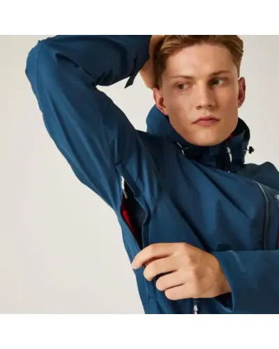 Férfi esőkabát 10.000 mm vízálló, Vízálló és lélegző Isotex, 10000 újrahasznosított 100% poliészter sztreccs anyag, Légáteresztő képesség 10 000 g/m?/24 óra, Tartós vízlepergető felület, Ragasztott varratok a teljes vízállóság érdekében, Hálós béléssel, levehatő, állítható kapucni, Hi-tech vízlepergető , első cipzár belső cipzárral, 2 irányban nyitható hónalj szellőző cipzár, 2 alsó zseb hi-tech vízzáró cipzárral, Mellzseb hi-tech vízzáró cipzárral, Belső cipzáras biztonsági zseb, Állítható mandzsetta