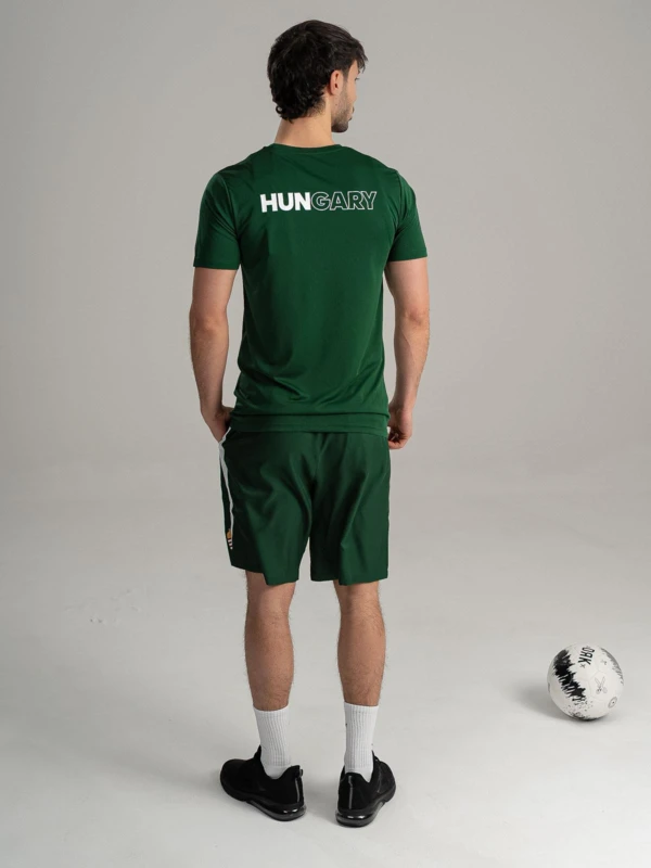 Magyarban a nagyvilág előtt. - A BOUNCE short a HUNGARY kollekció alapdarabja, amelyben a nemzeti színek és a teljesítmény találkozik. A kontrasztos fehér betétcsík, a printelt logó és a címer garantálja a győztes megjelenést. A gumírozott, húzózsinóros derék stabil illeszkedést ad, míg a 100% poliészter anyag végképp praktikus szereplő: rendkívül strapabíró, nem szívja magába a nedvességet, és villámgyorsan szárad, így a legkeményebb edzés vagy szurkolás közben is könnyû marad. - Vállald fel a csapatod, mutasd meg a színeid a BOUNCE rövidnadrágban.