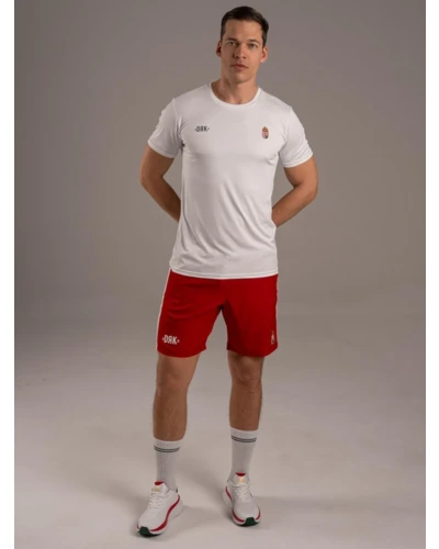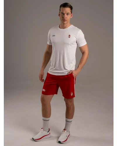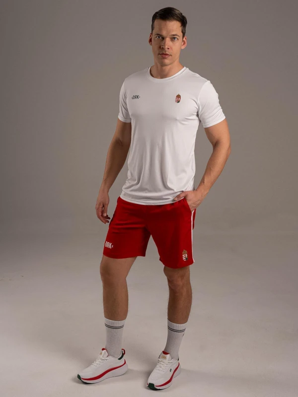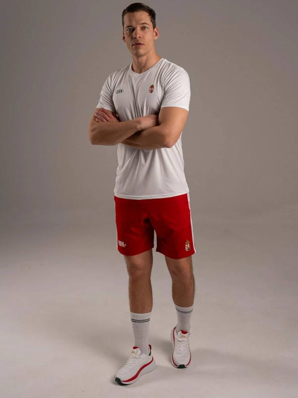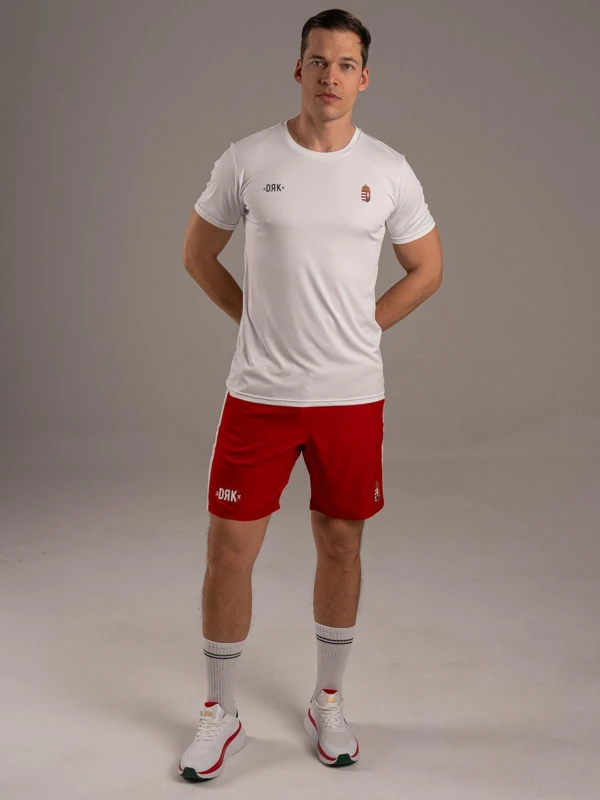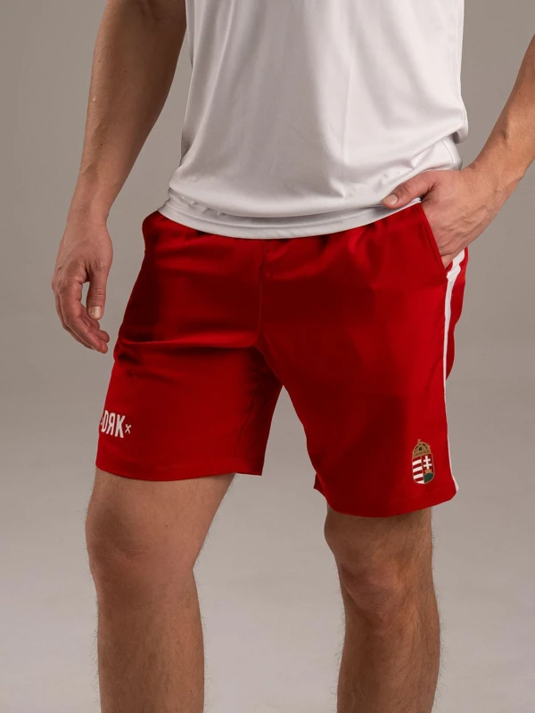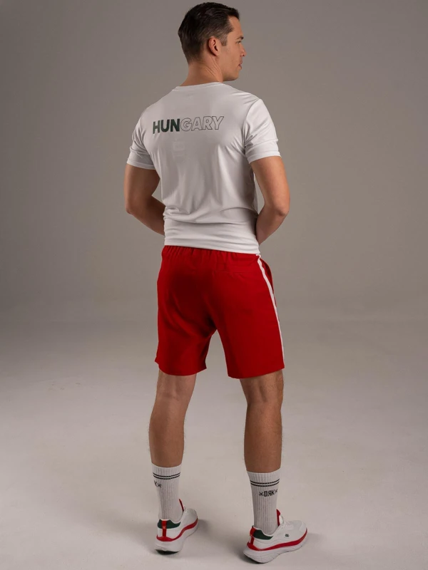 Magyarban a nagyvilág előtt. - A BOUNCE short a HUNGARY kollekció alapdarabja, amelyben a nemzeti színek és a teljesítmény találkozik. A kontrasztos fehér betétcsík, a printelt logó és a címer garantálja a győztes megjelenést. A gumírozott, húzózsinóros derék stabil illeszkedést ad, míg a 100% poliészter anyag végképp praktikus szereplő: rendkívül strapabíró, nem szívja magába a nedvességet, és villámgyorsan szárad, így a legkeményebb edzés vagy szurkolás közben is könnyû marad. - Vállald fel a csapatod, mutasd meg a színeid a BOUNCE rövidnadrágban.