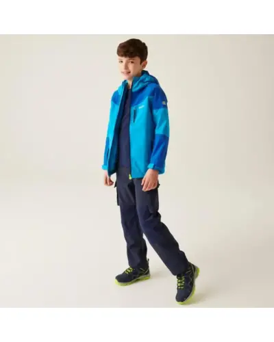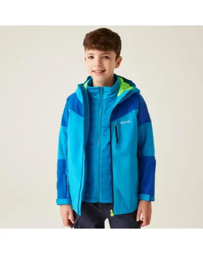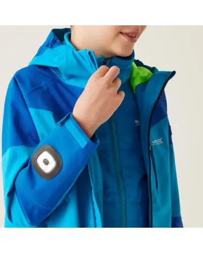 Gyerek 3in1 kabát 10000 vízálló és lélegző, Anyag: Isotex 15000 100% poliészter stretch szövet., Lélegzőképesség: 10,000g/m?/24 óra értékelés, amely biztosítja a jó szellőzést és nedvességkezelést., Víztaszító felület: Tartós vízlepergető bevonattal és teljes vízállóságot biztosító ragasztott varratokkal ellátva., Bélés: Hálós bélés., Kapucni: Beépített kapucni elasztikus szegéllyel., Cipzárvédő: Kényelmes viselet érdekében cipzárvédővel., Zsebek: Két cipzáras alsó zseb és egy cipzáras mellzseb., Mandzsetták: Állítható mandzsetták., Különleges jellemzők: Brite Light ujj zseblámpa technológia három fényerősségi fokozattal, beépített újratölthető akkumulátorral., Állítható szegély: Állítható rugalmas szegély 7 éves kortól., Biztonsági elemek: 360 fokos fényvisszaverő csíkok a jobb láthatóság érdekében., Nyomtatott névcímke: 8 éves korig., Belső rész:, Anyagösszetétel: Extol Stretch panel betétek (90% poliészter, 10% elasztán) és poliamid panelek a testhez., Szigetelés: Könnyû Thermoguard szigetelés., Kialakítás: 3 az 1-ben dizájn., Ez a kabát kiválóan alkalmas különböző időjárási körülmények közötti aktív használatra, mivel melegen tart, vízálló, lélegző és biztonsági funkciókkal is rendelkezik.