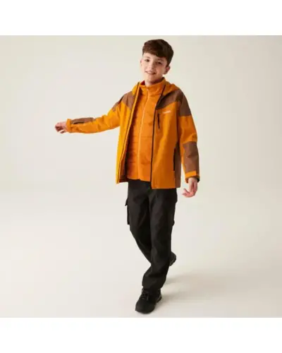 Gyerek 3in1 kabát 10000 vízálló és lélegző, Anyag: Isotex 15000 100% poliészter stretch szövet., Lélegzőképesség: 10,000g/m?/24 óra értékelés, amely biztosítja a jó szellőzést és nedvességkezelést., Víztaszító felület: Tartós vízlepergető bevonattal és teljes vízállóságot biztosító ragasztott varratokkal ellátva., Bélés: Hálós bélés., Kapucni: Beépített kapucni elasztikus szegéllyel., Cipzárvédő: Kényelmes viselet érdekében cipzárvédővel., Zsebek: Két cipzáras alsó zseb és egy cipzáras mellzseb., Mandzsetták: Állítható mandzsetták., Különleges jellemzők: Brite Light ujj zseblámpa technológia három fényerősségi fokozattal, beépített újratölthető akkumulátorral., Állítható szegély: Állítható rugalmas szegély 7 éves kortól., Biztonsági elemek: 360 fokos fényvisszaverő csíkok a jobb láthatóság érdekében., Nyomtatott névcímke: 8 éves korig., Belső rész:, Anyagösszetétel: Extol Stretch panel betétek (90% poliészter, 10% elasztán) és poliamid panelek a testhez., Szigetelés: Könnyû Thermoguard szigetelés., Kialakítás: 3 az 1-ben dizájn., Ez a kabát kiválóan alkalmas különböző időjárási körülmények közötti aktív használatra, mivel melegen tart, vízálló, lélegző és biztonsági funkciókkal is rendelkezik.